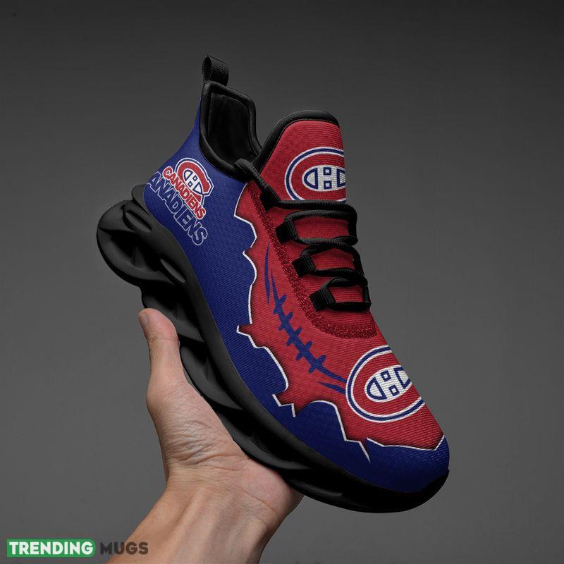This Montreal Canadiens Max Soul Shoes Versatile Running Sneakers is a breathable, lightweight, and comfortable casual outdoor shoe that has a unique design. It is made of a mesh fabric which makes it sweat absorbent and breathable, while the rubber bottom ensures traction, comfort, and durability. It is available in two colors: black or white sole. There are two styles of shoelace holes so you can choose your preference.