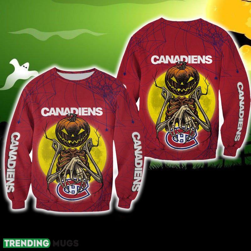Crafted with meticulous attention to detail, this sweater features a charming design that combines the iconic Montreal Canadiens logo with a spooky Halloween twist. The Pumpskin Monster graphic adds a playful touch, making it an eye-catching conversation starter at any holiday gathering.