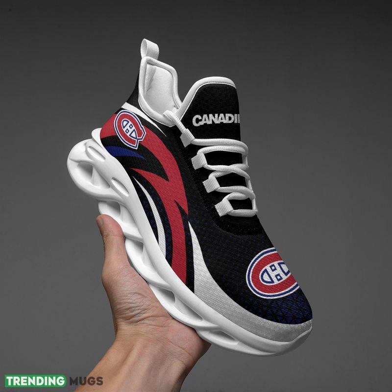 This Montreal Canadiens Triangle Abstract Pattern Max Soul Shoes Runners Running Sneakers is a breathable, lightweight, and comfortable casual outdoor shoe that has a unique design. It is made of a mesh fabric which makes it sweat absorbent and breathable, while the rubber bottom ensures traction, comfort, and durability. It is available in two colors: black or white sole. There are two styles of shoelace holes so you can choose your preference.