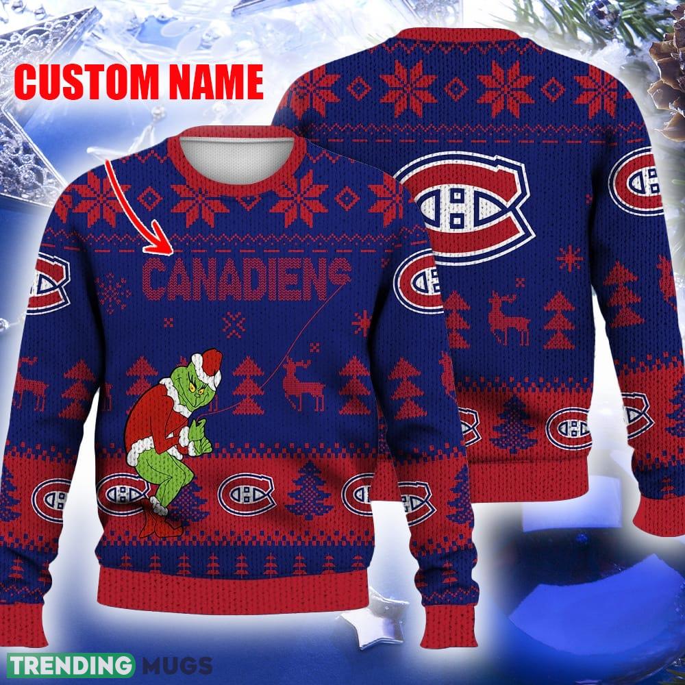 Montreal Canadiens Ugly Christmas Sweater Grinch Custom Ice Hockey NHL Gift For Christmas Holidays Custom Name Informations: