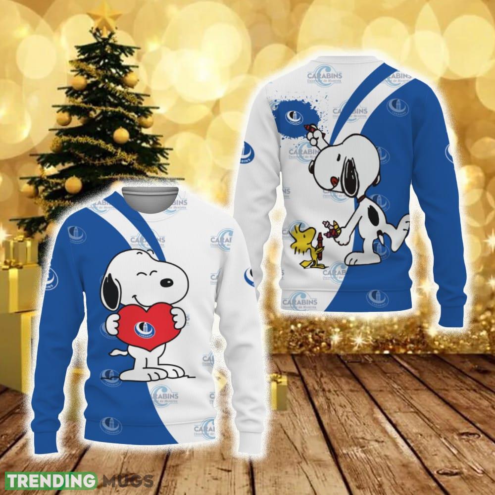 Crafted with care, this sweater features a high-quality 3D design of the iconic Snoopy character wearing the Montreal Carabins team jersey. The cute heart detailing adds a touch of sweetness, making it an ideal gift for Christmas or any special occasion.
