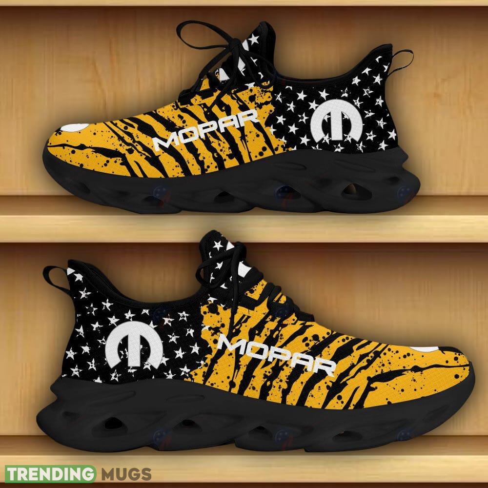 This Mopar Car And Motorcycle Racing Chunky Sneaker Yellow Max Soul Shoes Gift For Fans is a breathable, lightweight, and comfortable casual outdoor shoe that has a unique design. It is made of a mesh fabric which makes it sweat absorbent and breathable, while the rubber bottom ensures traction, comfort, and durability. It is available in two colors: black or white sole. There are two styles of shoelace holes so you can choose your preference.
