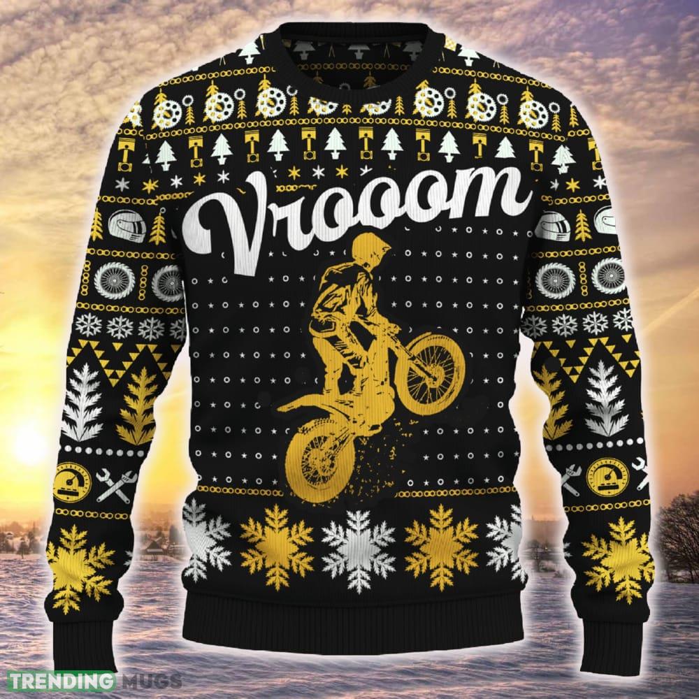 Not only does this sweater make a fantastic holiday gift, but it also serves as an excellent conversation starter. Whether you’re attending an ugly sweater party, a family gathering, or simply spreading some holiday cheer, this Motorcross Vrooom Trials Bike Christmas Tree 3D Sweater Ideas Gift will surely make heads turn and bring smiles to everyone’s faces.