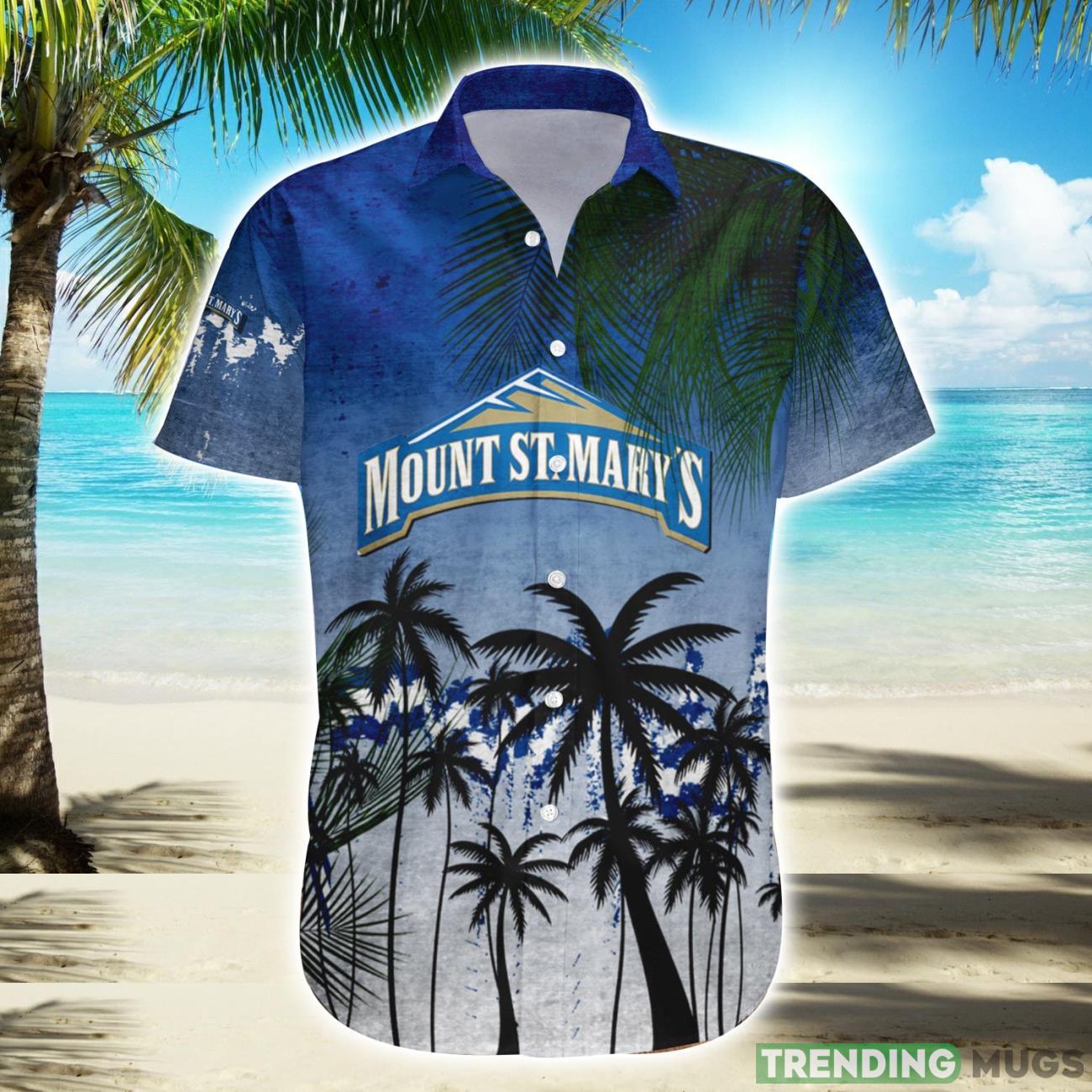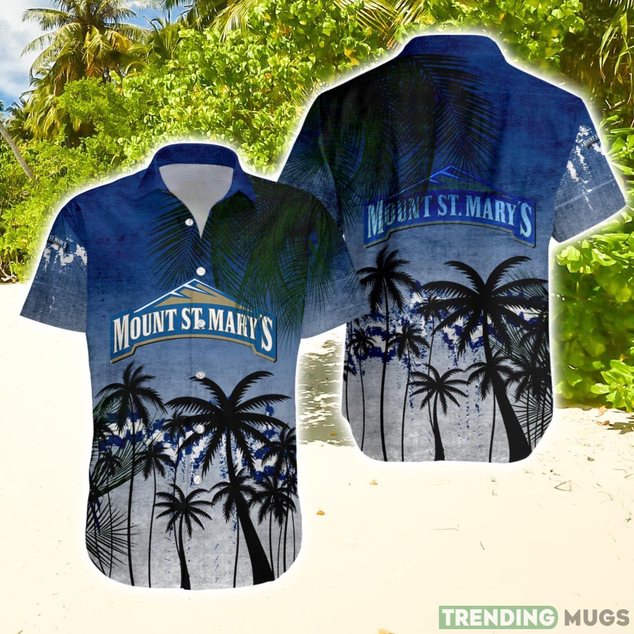 Mount St. Mary’s Mountaineers Hawaiian Shirt Summer Gift Coconut Tree Tropical Grunge Pattern For NCAA Fans Product Photo 1