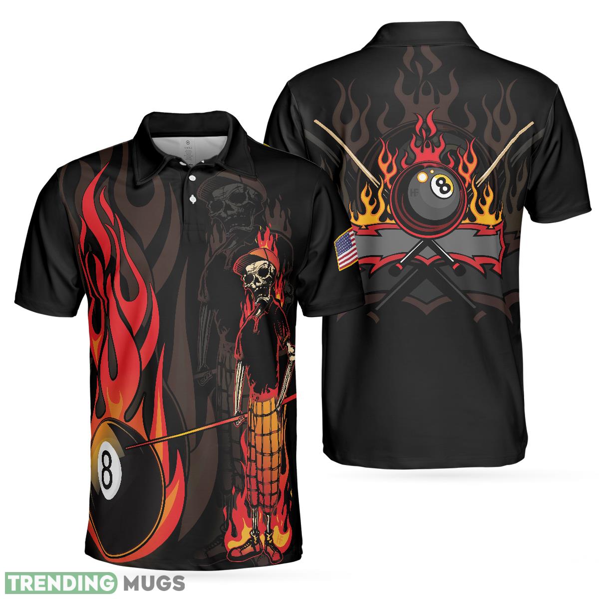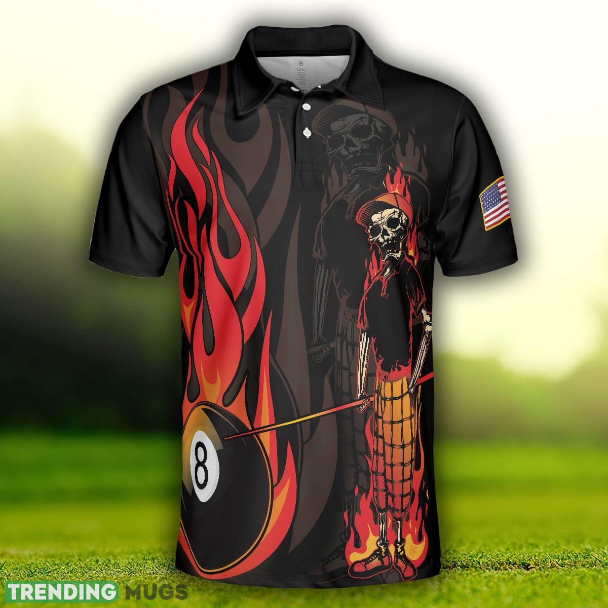 Mr Bones 8 Ball American Flag Billiards Skull Short Sleeve, Cool Skeleton Billiards Shirt Polo Shirt Information: