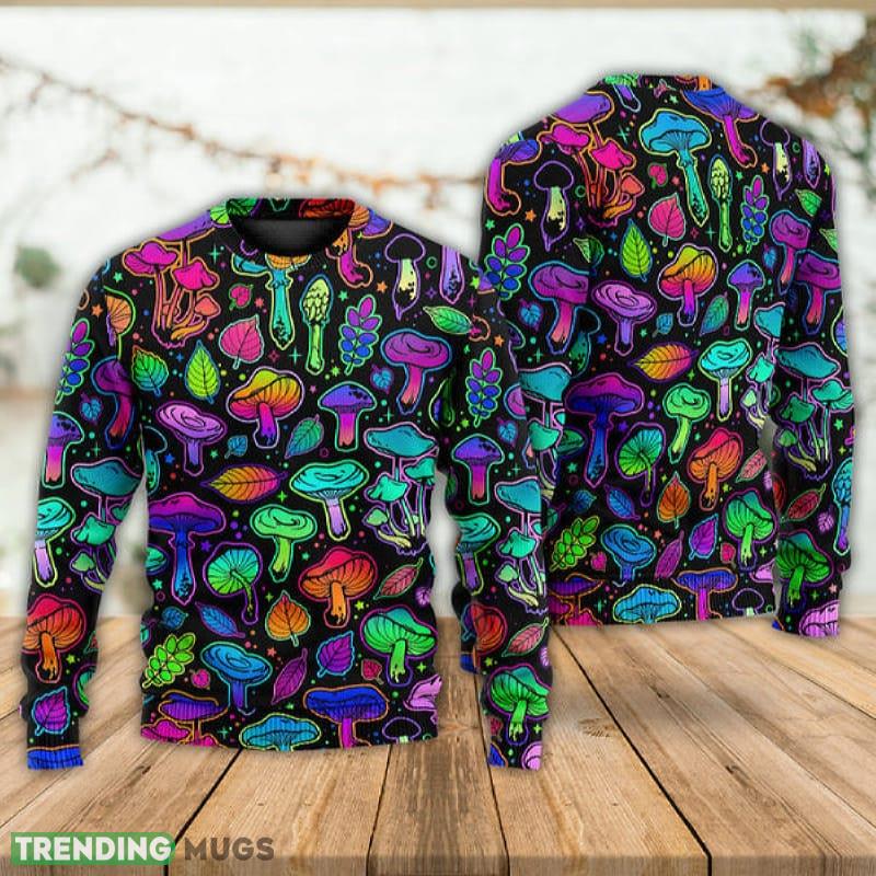 Mushroom Neon Colorful Bright With Leaf Ugly Christmas Sweater Gift For Men Women 3D Sweater