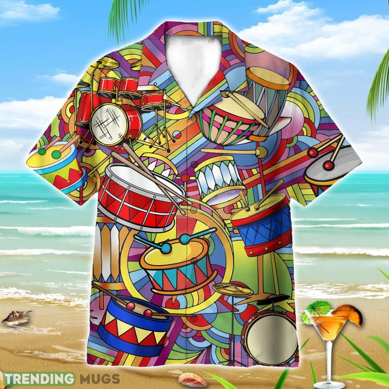 Designed with a unique 3D print, this Hawaiian shirt showcases a colorful blend of musical elements, peace signs, love symbols, and of course, drums. Made from high-quality materials, this shirt ensures ultimate comfort even during the hottest summer days, allowing you to embrace the laid-back spirit of the season.