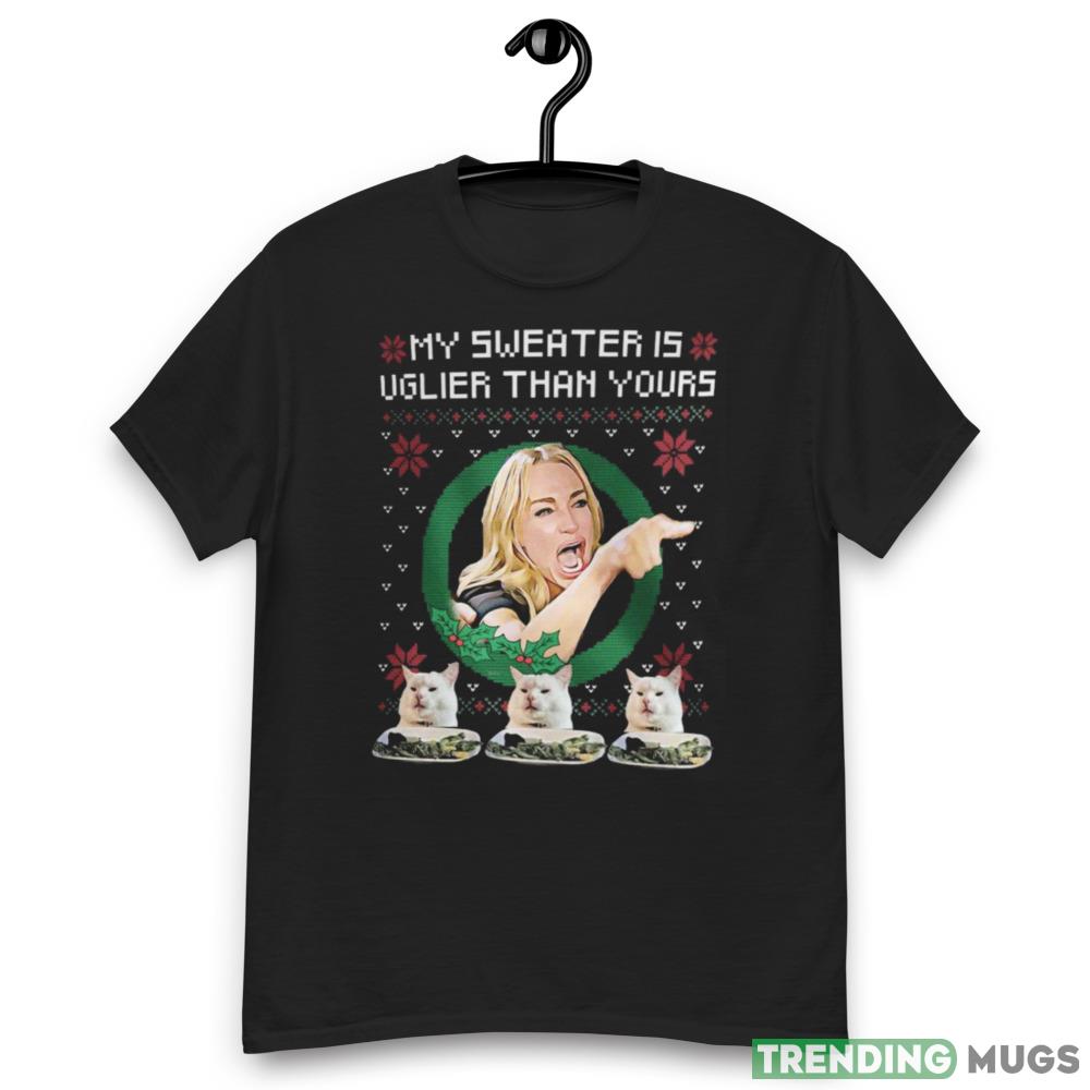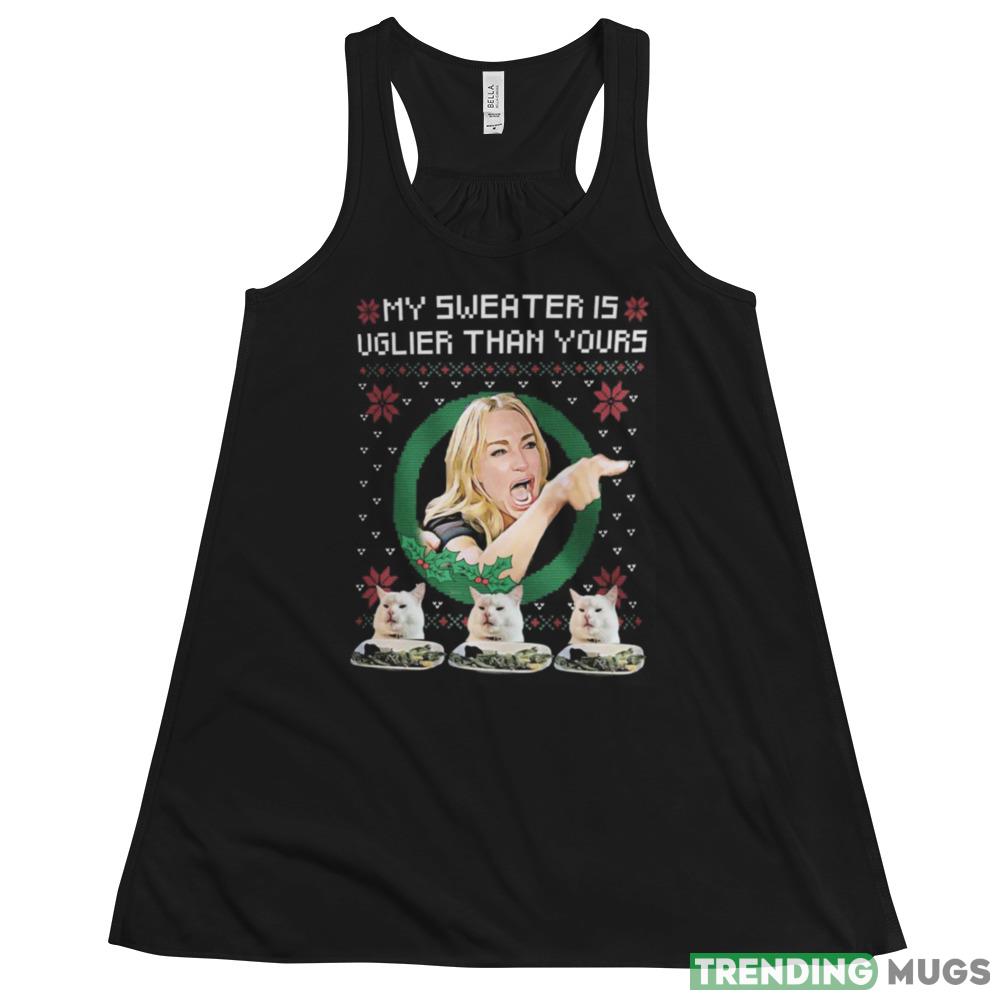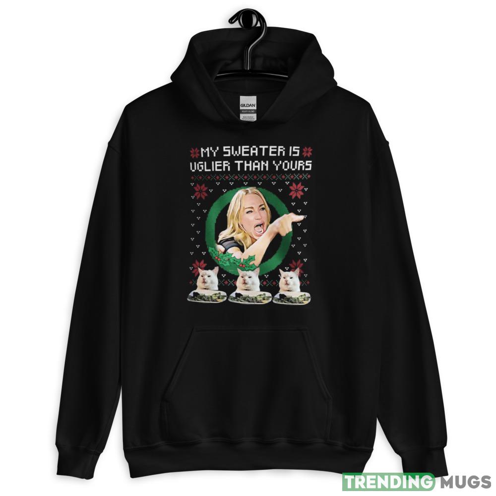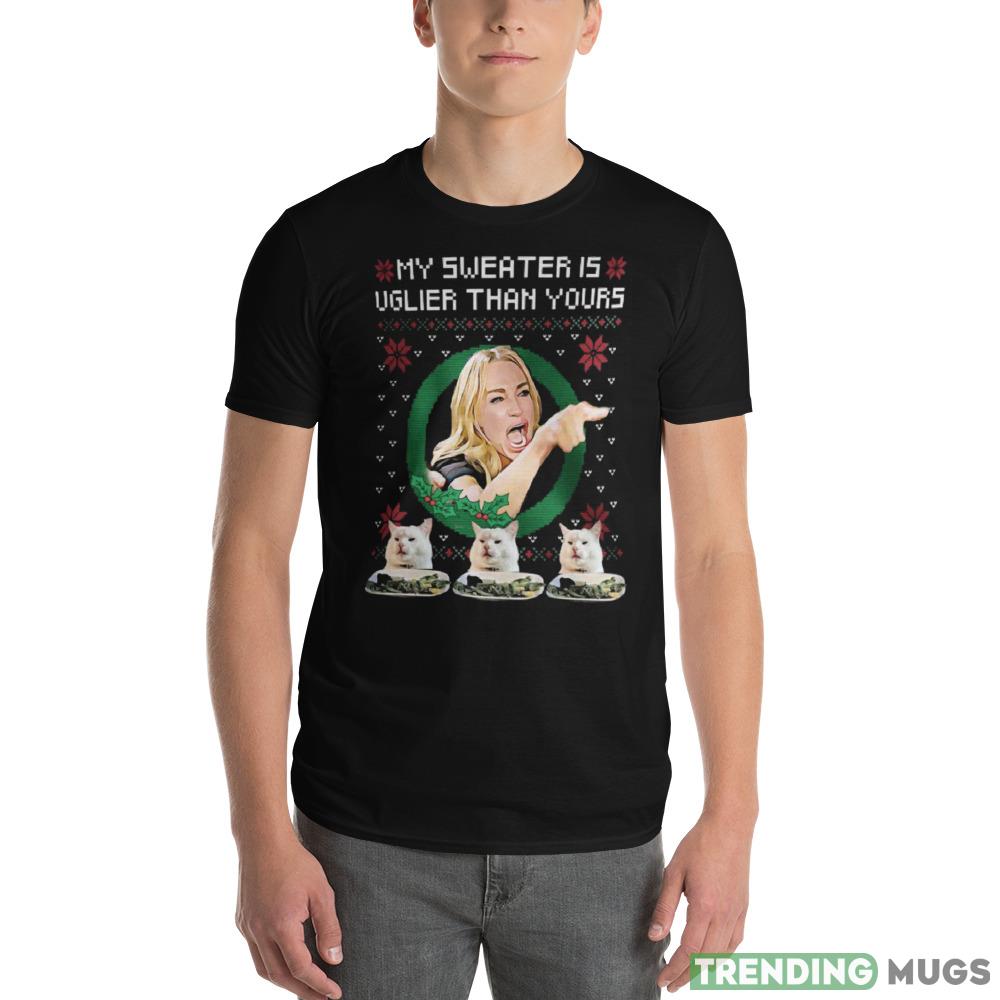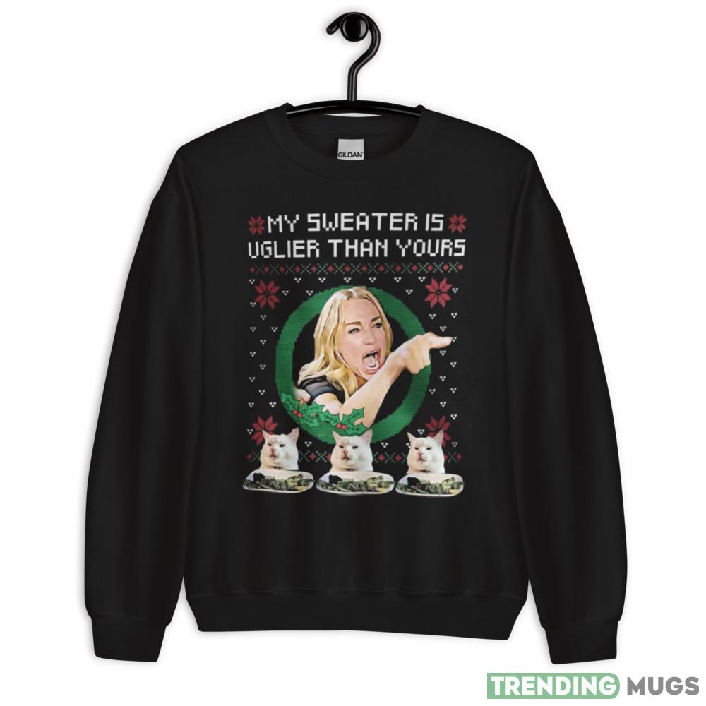 Crafted from high-quality materials, this sweatshirt is both comfortable and stylish, with a relaxed fit that’s perfect for lounging around the house or running errands. The bold graphic features a woman yelling at a cat, with the hilarious message “My Christmas Sweatshirt Is Uglier Than Yours” emblazoned across the front.