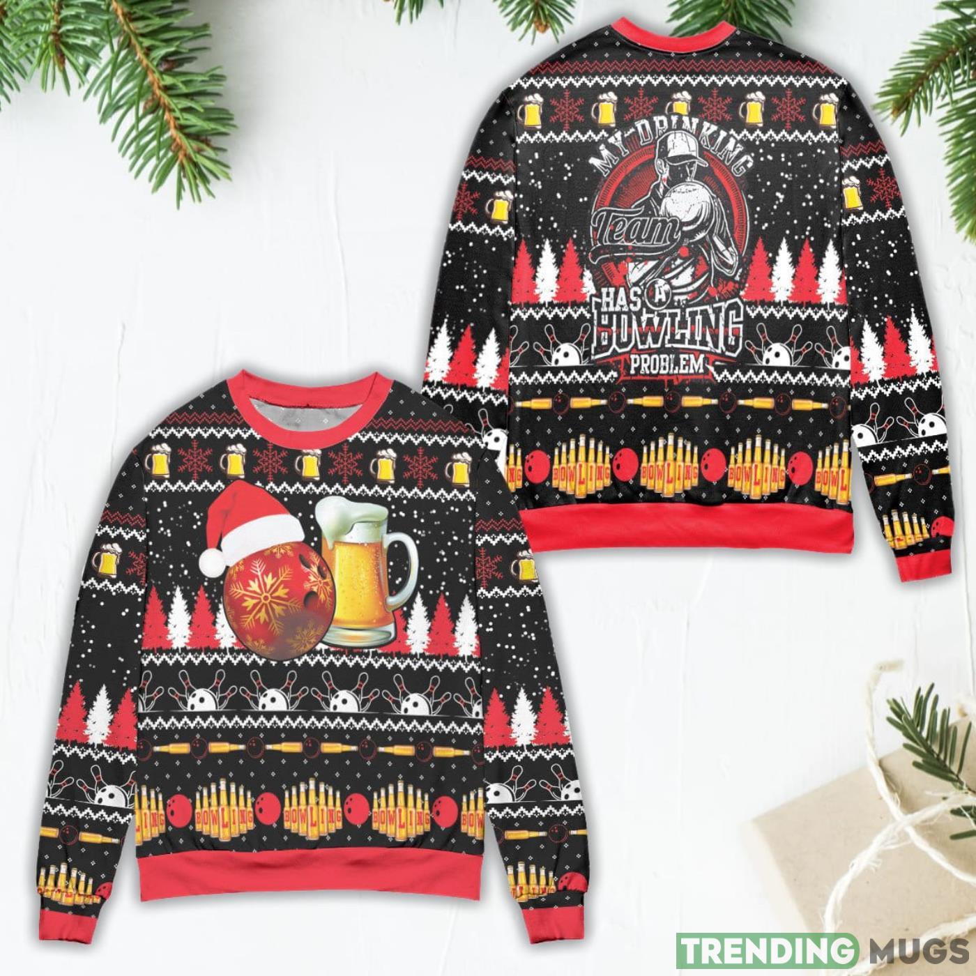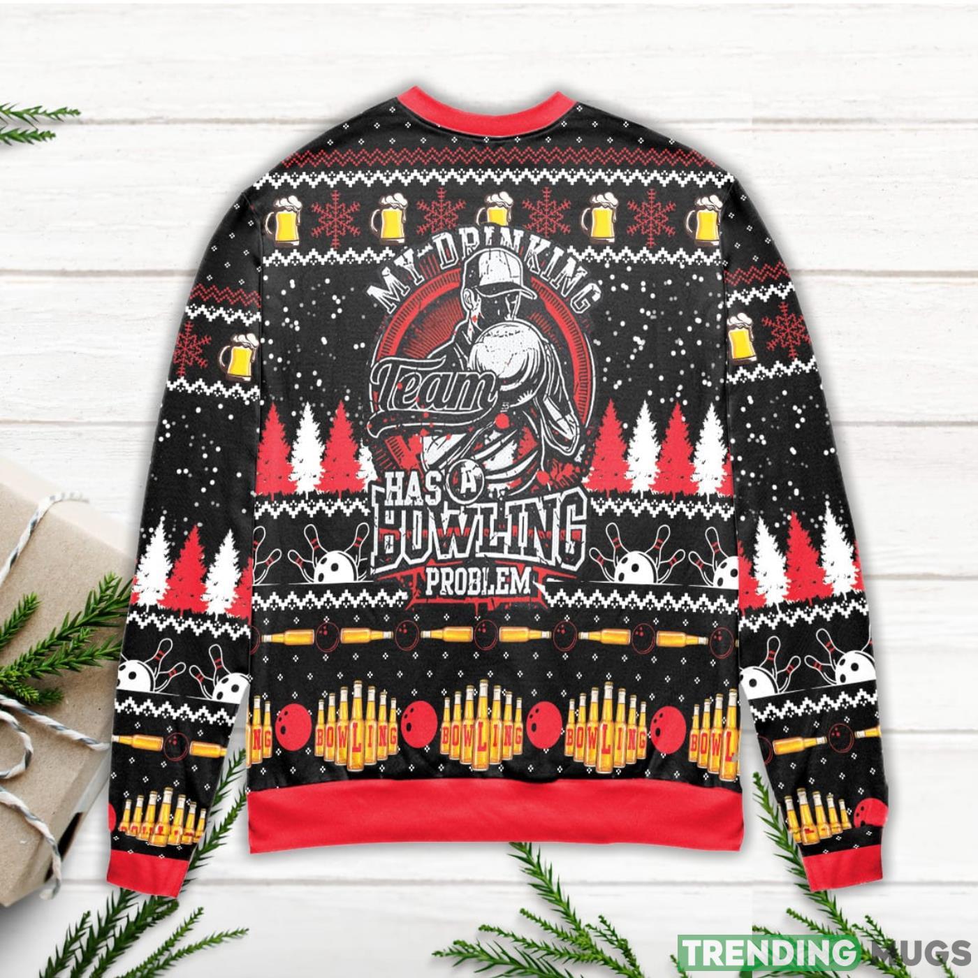 Some of the My Drinking Team Has A Bowling Problem Snowflake Pattern Ugly Christmas Sweater photos
