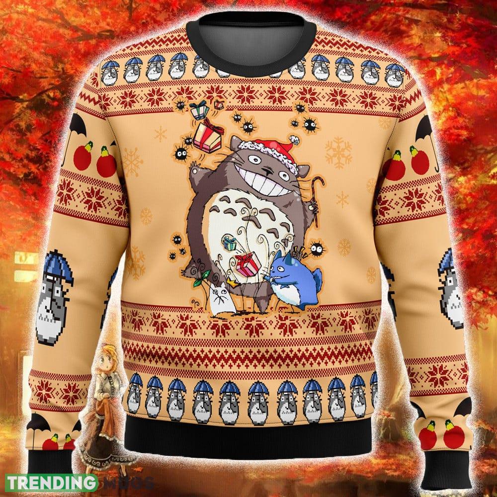 Whether you’re attending an Ugly Christmas Sweater party or simply want to showcase your love for Totoro in a unique way, this sweater is the perfect choice. It also makes an excellent gift for the Totoro enthusiasts in your life, as it combines their passion for the beloved character with the festive spirit of the holiday season.