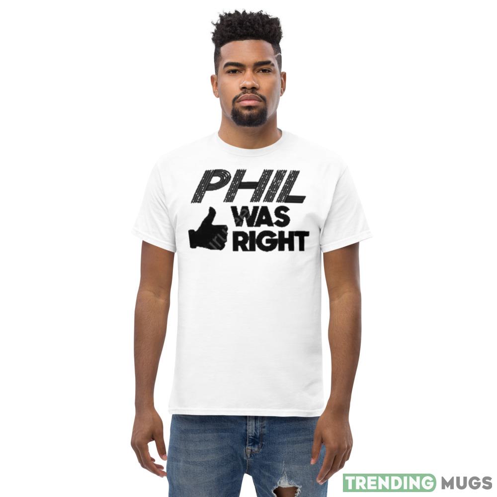 The My Take Merch Phil Was Right White Shirt is a must-have for any fashion-forward individual who wants to make a statement. This trendy shirt features a clean white color that can be paired with a variety of outfits, making it perfect for both casual and formal occasions. The unique design of the shirt showcases the message “Phil Was Right,” making it a great conversation starter and a perfect addition to your wardrobe. Made from high-quality materials, this shirt is both comfortable and durable, ensuring that you’ll be able to wear it for years to come. Whether you’re heading out for a night on the town or just running errands, the My Take Merch Phil Was Right White Shirt is the perfect choice for anyone who wants to stand out from the crowd. So why wait? Add this amazing shirt to your collection today and make a statement that nobody can ignore!