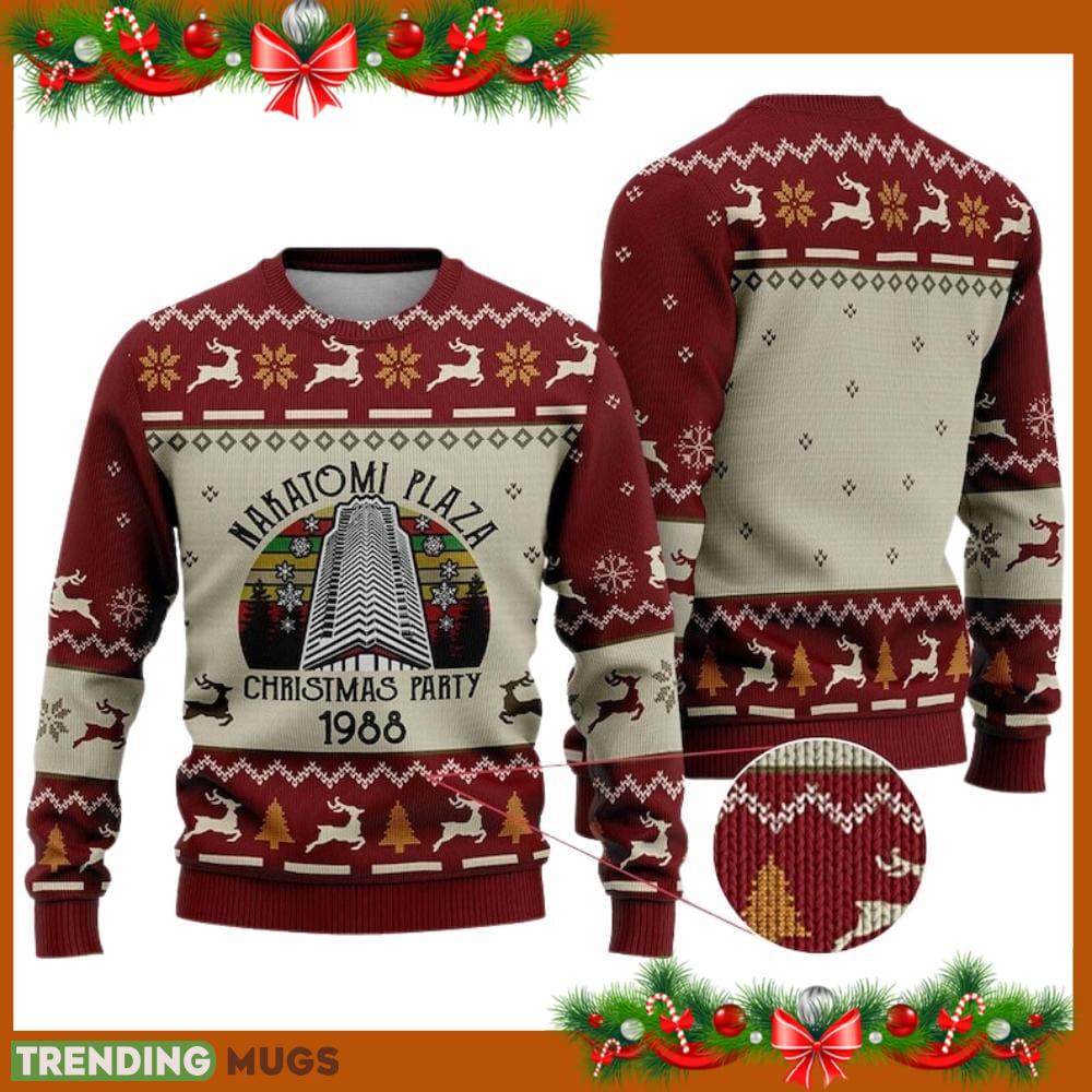 Get ready to take your Christmas party game to the next level with the Nakatomi Plaza Christmas Party 1988 Ugly Christmas Sweater! Inspired by the iconic movie, this sweater is a must-have for any die-hard fan.