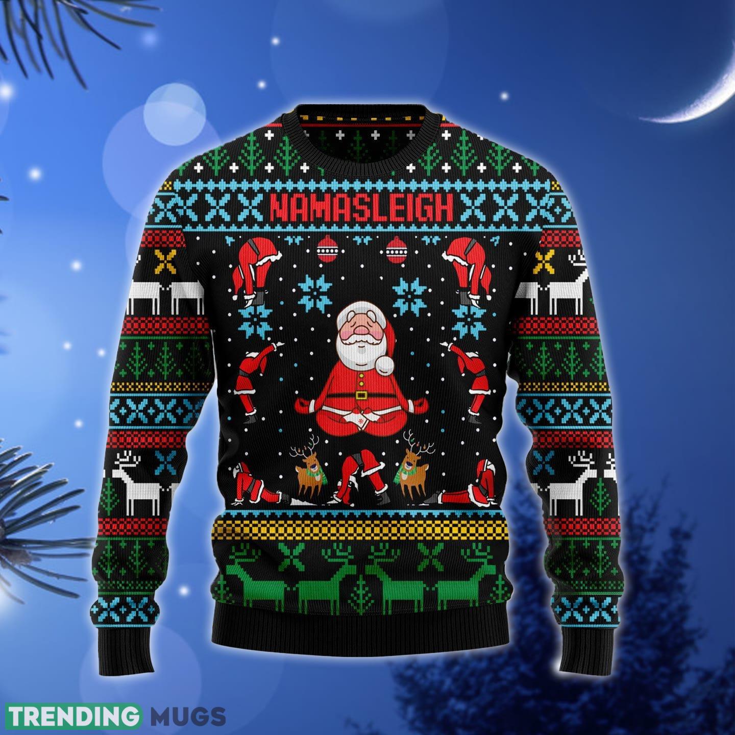 With its vibrant colors and intricate detailing, this sweater is sure to turn heads and spark conversations wherever you go. The Namasleigh Ugly Christmas Sweater Gift is an unforgettable present for your loved ones or a delightful treat for yourself. Spread the festive cheer and make this holiday season even more memorable with this one-of-a-kind sweater. Get ready to sleigh the fashion game and make a statement with the Namasleigh Ugly Christmas Sweater Gift!