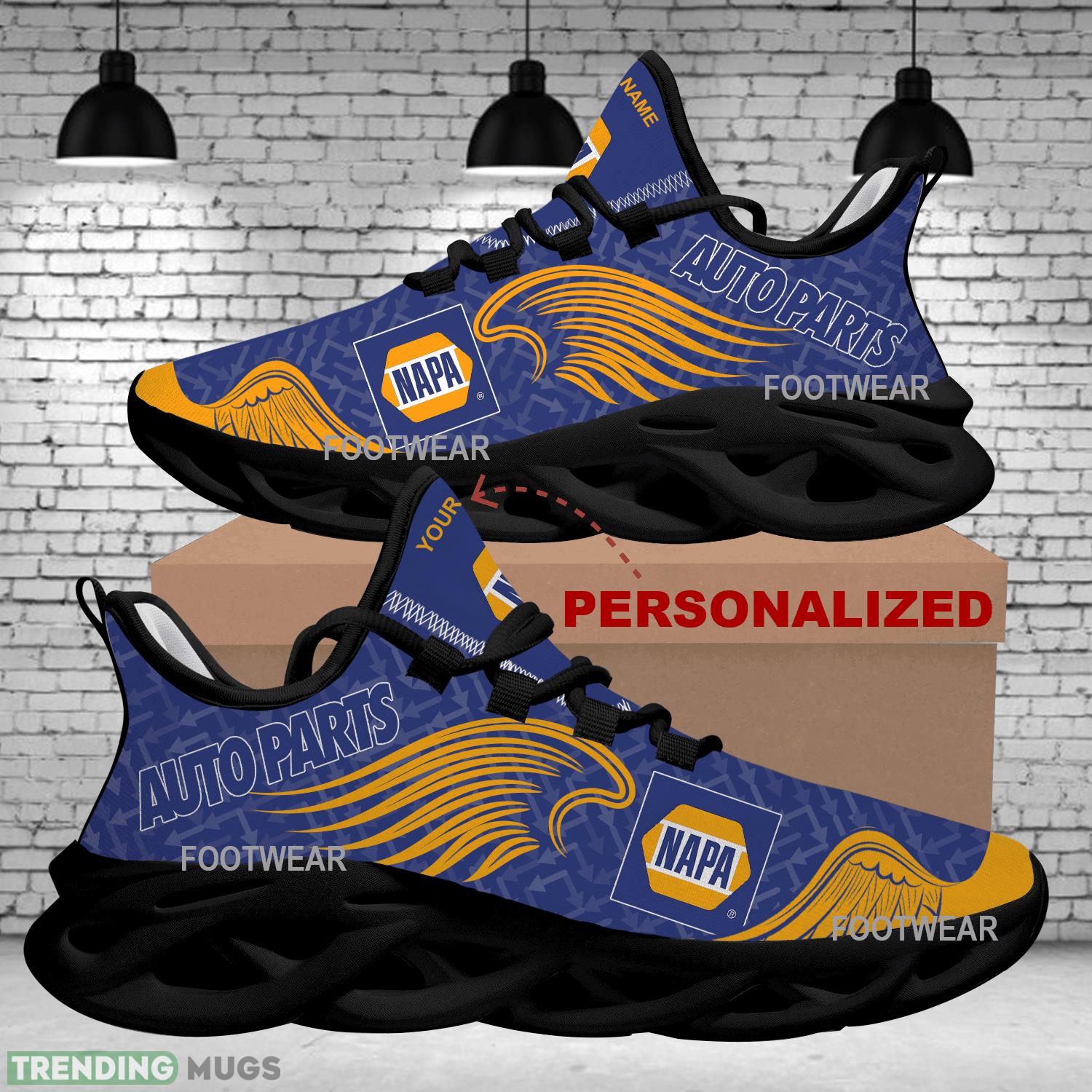Elevate your style with the NAPA AUTO PARTS Brand Logo Wings Pattern Max Soul Shoes Personalized Panache Running Sneaker. These sleek and stylish sneakers are designed for maximum comfort and performance, making them the perfect choice for any active lifestyle. With a unique wing pattern featuring the iconic NAPA AUTO PARTS brand logo, these shoes are sure to turn heads wherever you go. Step up your shoe game and add a touch of personalized flair to your wardrobe with these trendy running sneakers.