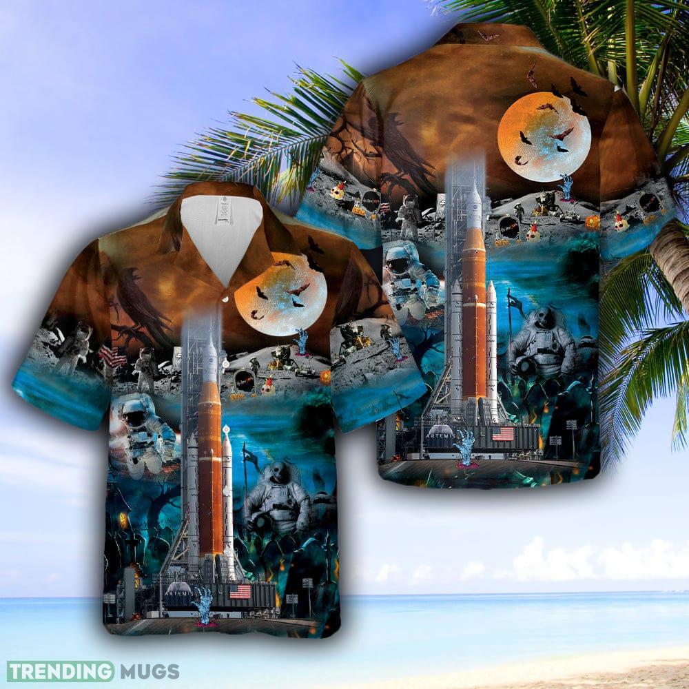 NASA Artemis SLS Moon Rocket Halloween Hawaiian Shirt – NASA Artemis SLS Moon Rocket Halloween Hawaiian Shirt