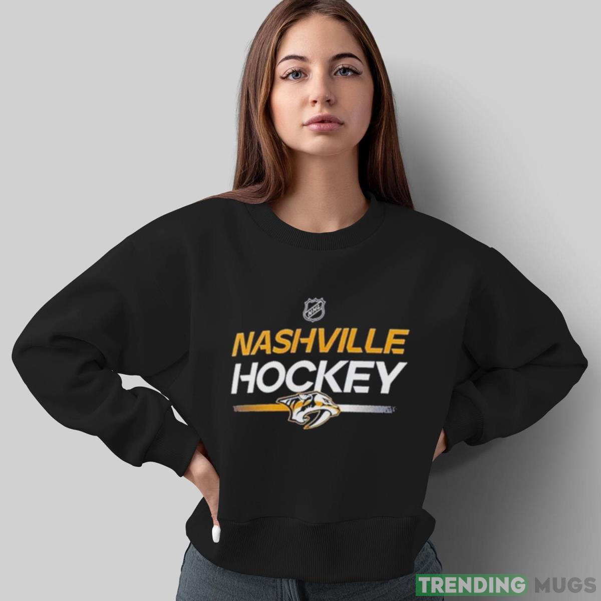 Not only does this shirt showcase your team spirit, but it also offers a flattering fit that is both stylish and comfortable. Its sleek design and vibrant colors will turn heads and have fellow Predators fans asking where they can get their hands on one too.
