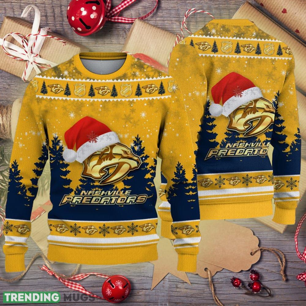 Nashville Predators Logo Golden Fans Santa Hat Tree Ugly Christmas 3D Sweater Informations: