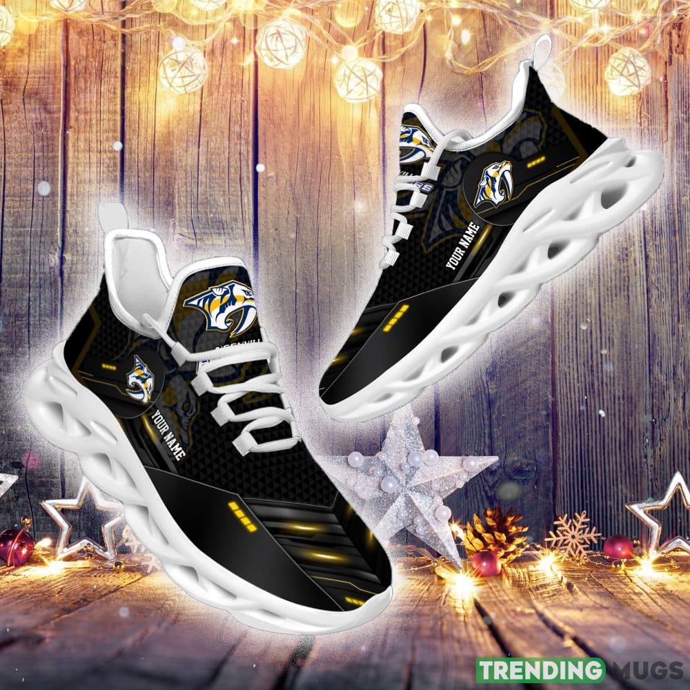 The Nashville Predators NHL Sport Black Max Soul Shoes Custom Name Running Sneakers are a must-have for diehard Predators fans who want to showcase their team pride in style.