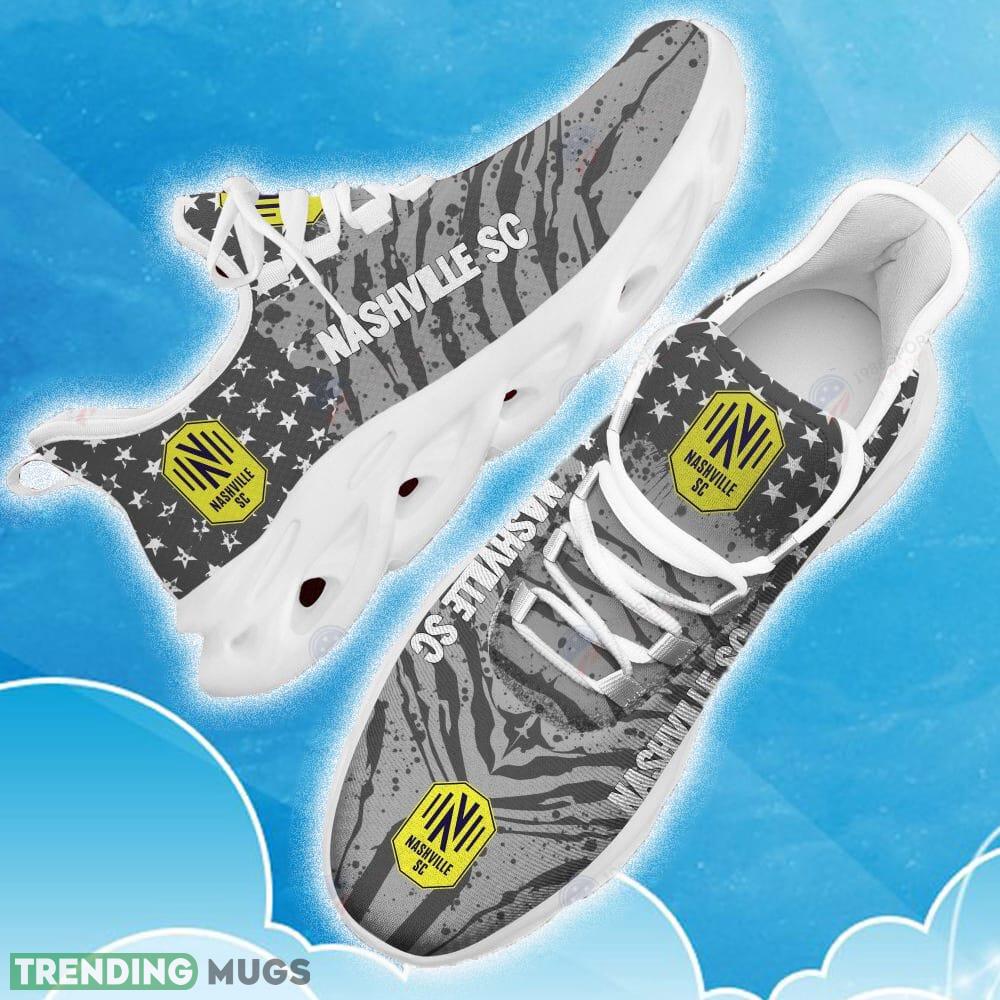 This Nashville SC Grey New Chunky Shoes Camo Logo Printed For Men And Women Gift Fans Max Soul Sneakers is a breathable, lightweight, and comfortable casual outdoor shoe that has a unique design. It is made of a mesh fabric which makes it sweat absorbent and breathable, while the rubber bottom ensures traction, comfort, and durability. It is available in two colors: black or white sole. There are two styles of shoelace holes so you can choose your preference.