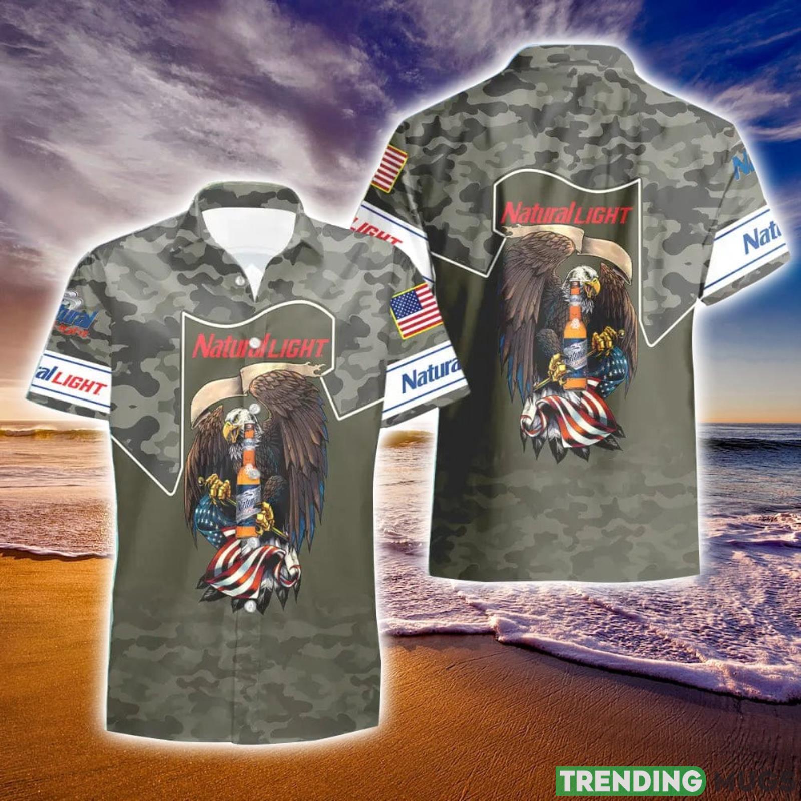 Natural Light Beer Green Camo Eagle Usa Flag Hawaiian Shirt And Shorts Best Gift For Summer Holiday Details: