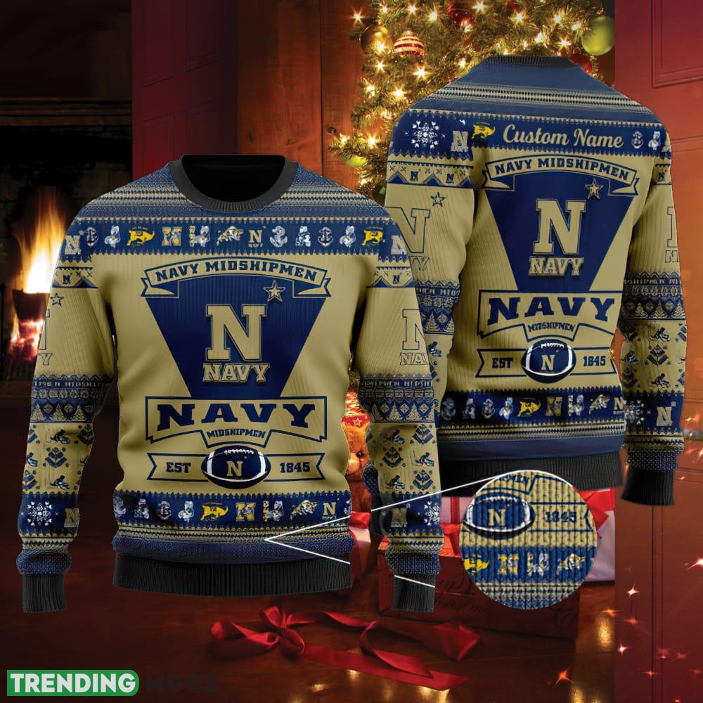 Navy Midshipmen Football Team Logo Knitted Christmas Sweater Yuletide Custom Name Informations: