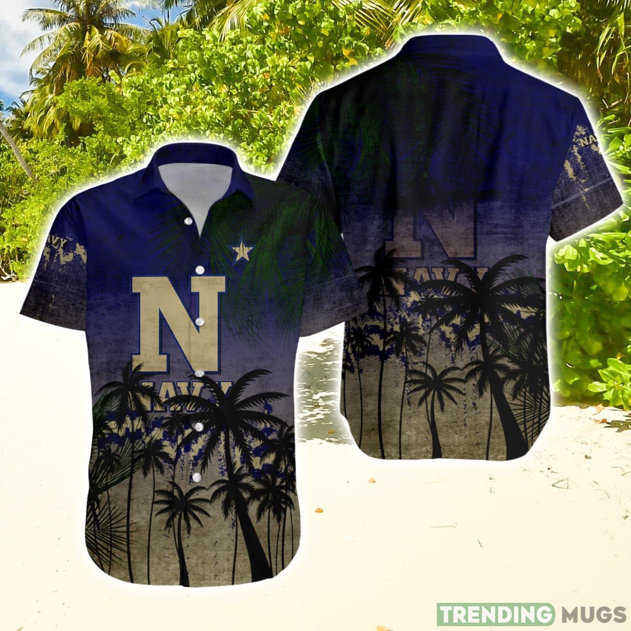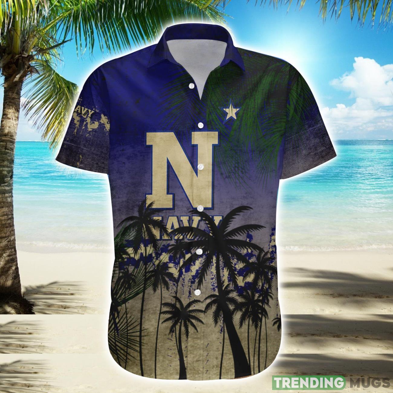 Navy Midshipmen Hawaiian Shirt Summer Gift Coconut Tree Tropical Grunge Pattern For NCAA Fans Details: