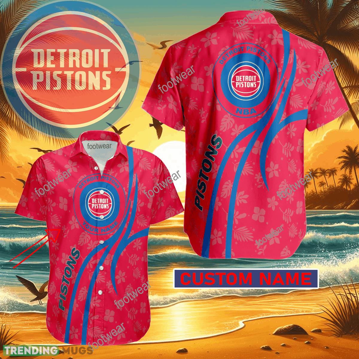 NBA Detroit Pistons Hawaiian Shirt Design Gift Fans Summer Holidays Custom Name Details: