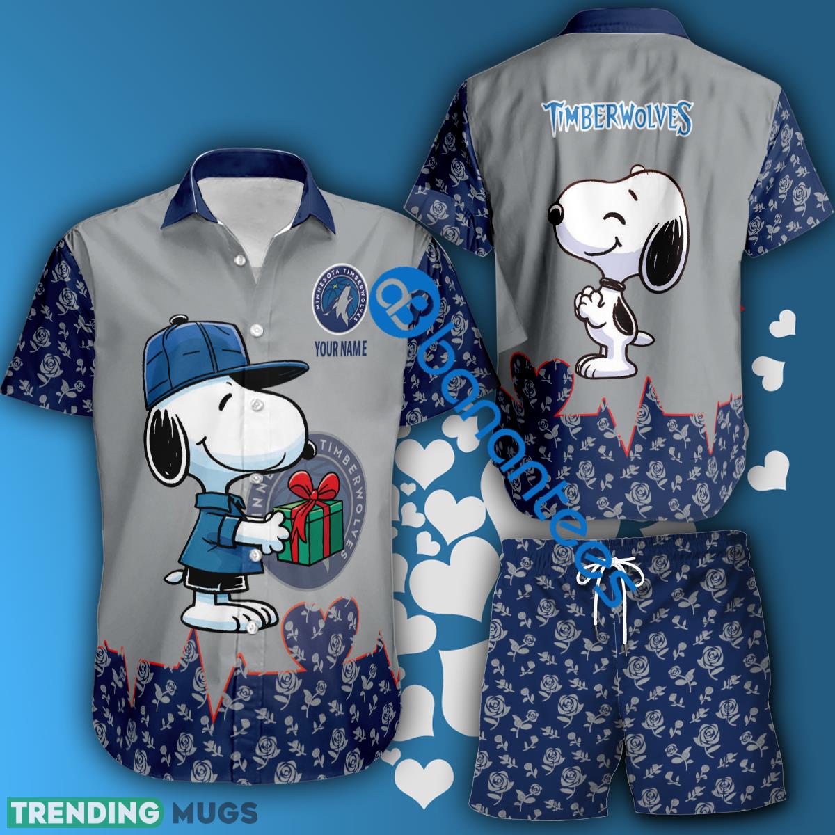 Some of the NBA Minnesota Timberwolves Snoopy Gift Boyfriend And Girlfriend Combo Hawaiian Shirt And Short Custom Name photos
