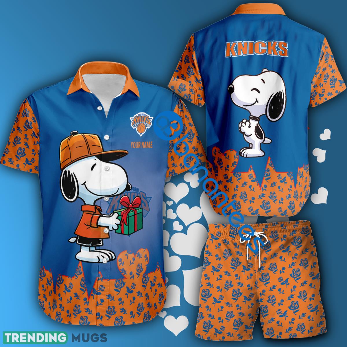 This design is available in a combo Hawaiian shirt & shorts. You can also get it separate. The default option is only one shirt or one pair of shorts. You have chosen a combo to get them both. This combo NBA New York Knicks Snoopy Gift Boyfriend And Girlfriend Combo Hawaiian Shirt And Short Custom Name is perfect to go to the beach. Get yours now or make a great gift.
