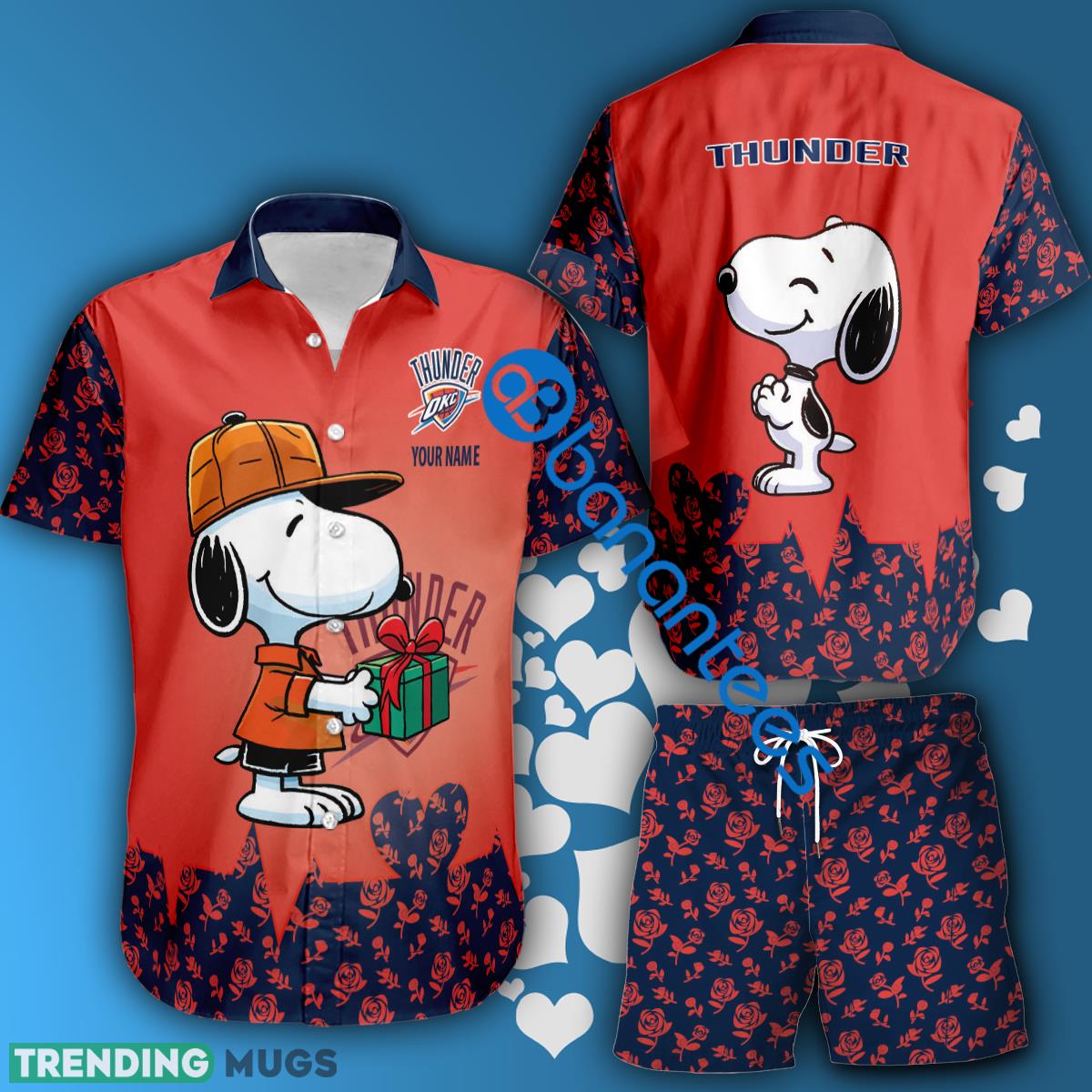 Get ready to showcase your love for the NBA and your favorite team, the Oklahoma City Thunder, with our exclusive Snoopy Gift Boyfriend and Girlfriend Hawaiian Shirt and Short Set! Designed to add a touch of style and fandom to your summer wardrobe, this custom name set is the perfect way to show off your support in a unique and fashionable way.