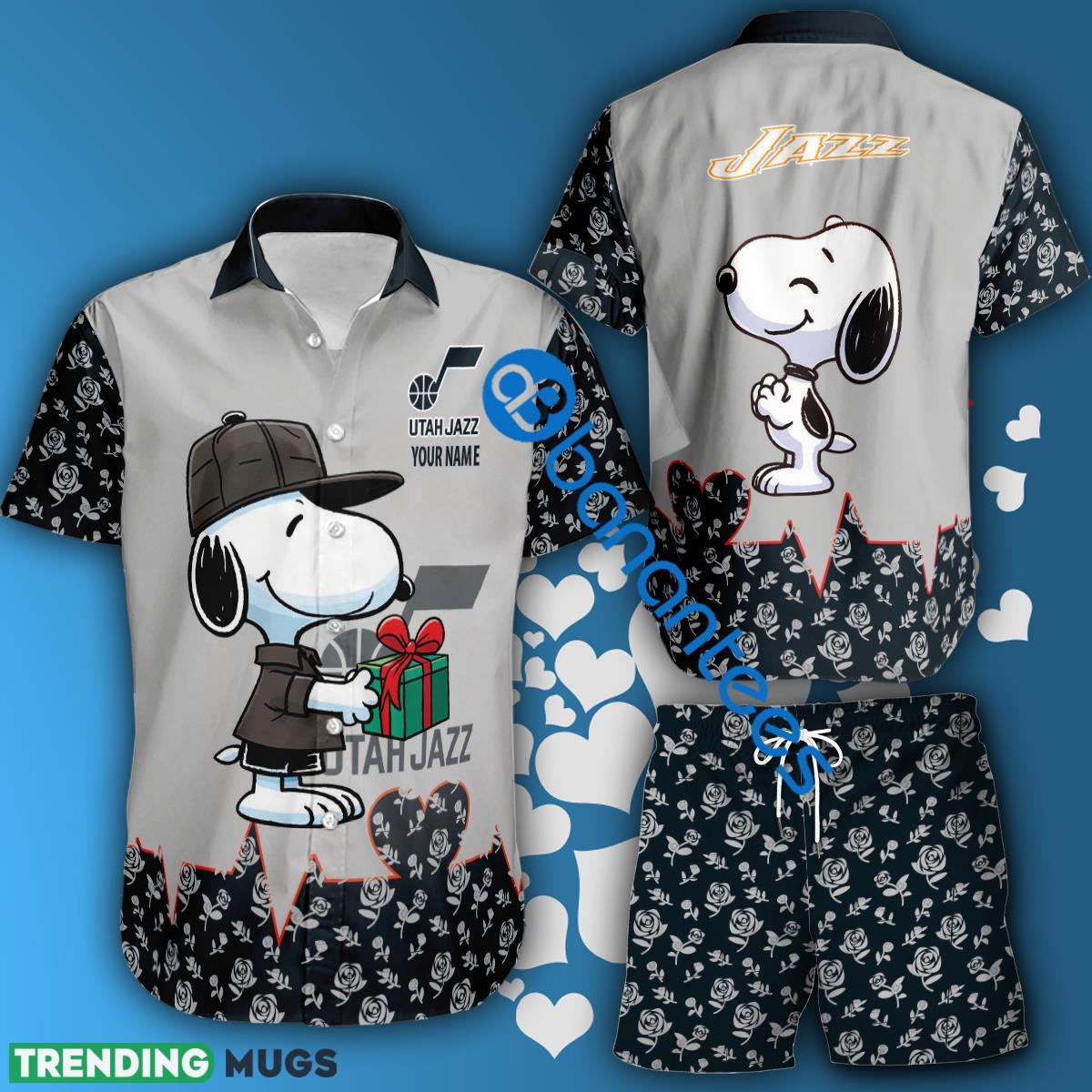 NBA Utah Jazz Snoopy Gift Boyfriend And Girlfriend Hawaiian Shirt And Short Set Custom Name – NBA Utah Jazz Snoopy Gift Boyfriend And Girlfriend Hawaiian Shirt And Short Set Custom Name