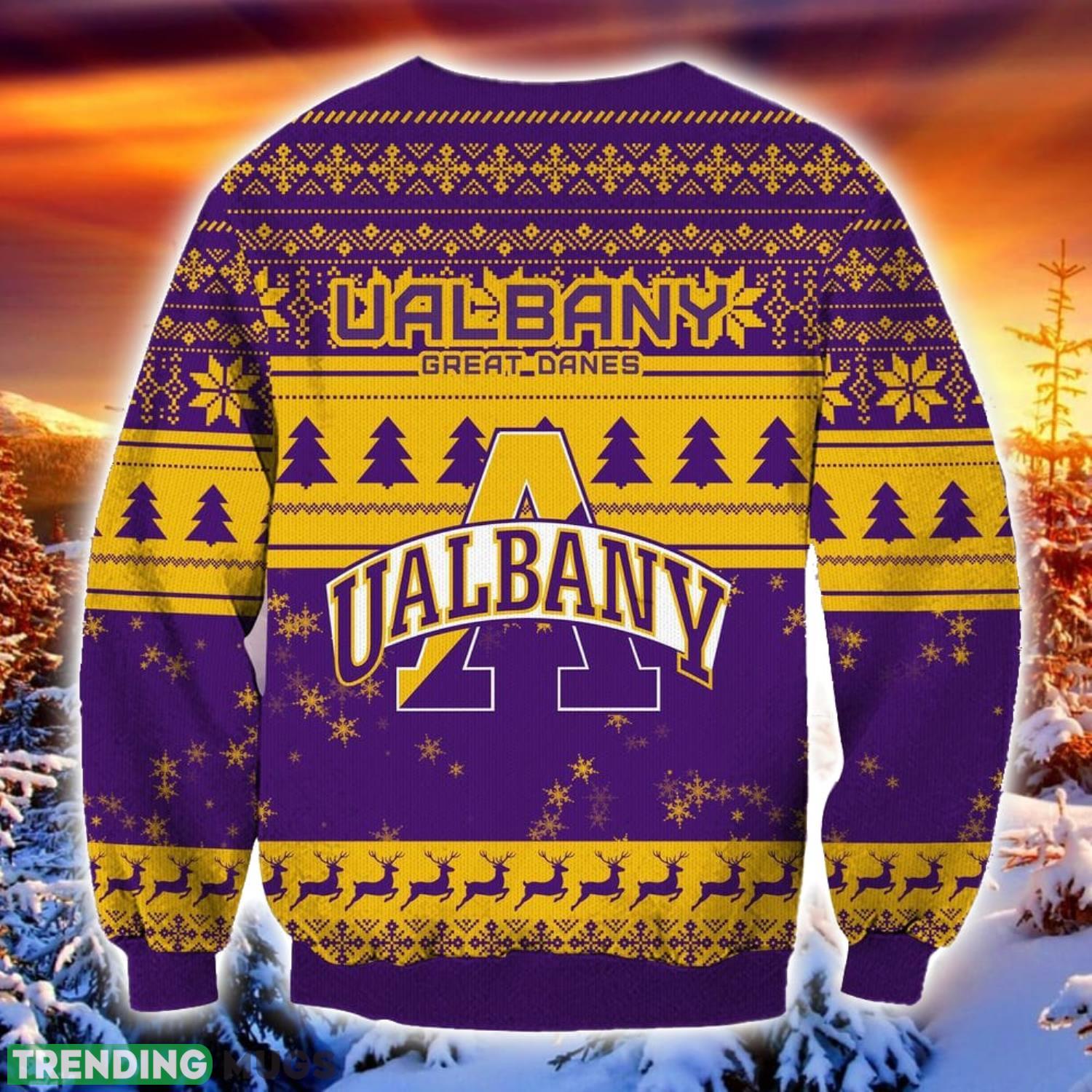 Not only does this sweater capture the essence of the holiday season, but it also showcases your unwavering support for the Albany Great Danes. Whether you’re attending a holiday party or cheering on your favorite team, this sweater is bound to turn heads and spark conversations.