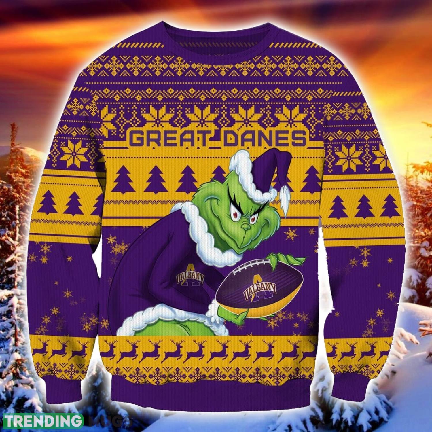 NCAA Albany Great Danes Grinch Ugly Christmas Sweater Trending Sweater For 2023 Christmas Holidays Informations: