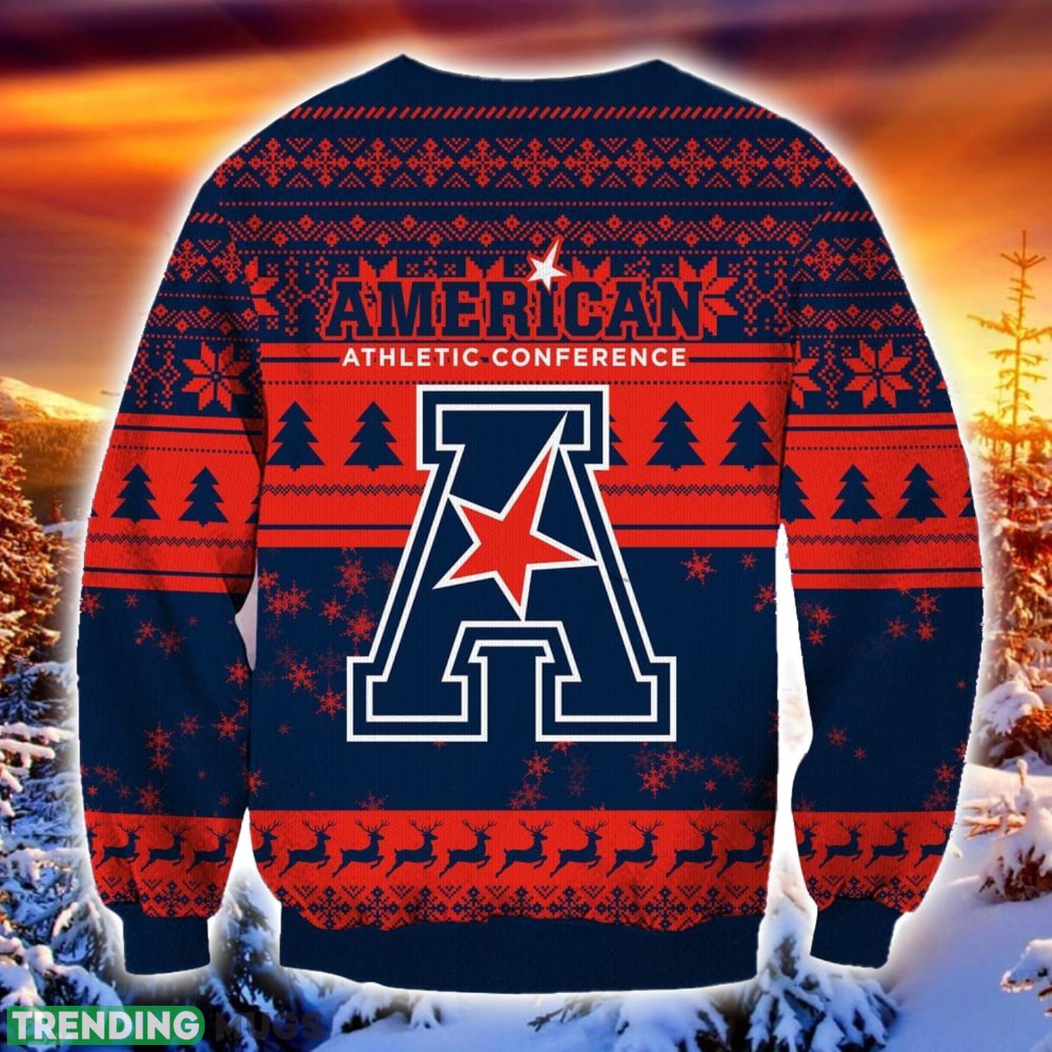 With its trending design and association with the NCAA American Athletic Conference, this sweater is sure to turn heads and spark conversations wherever you go. Embrace the joy of the holiday season and showcase your love for both Christmas and your favorite sports conference with this unique garment.