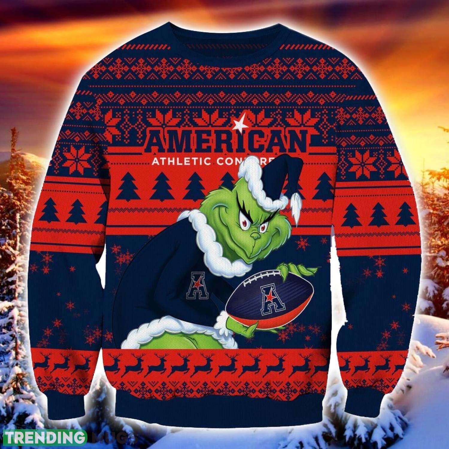 NCAA American Athletic Conference Grinch Ugly Christmas Sweater Trending Sweater For 2023 Christmas Holidays Product Photo 1