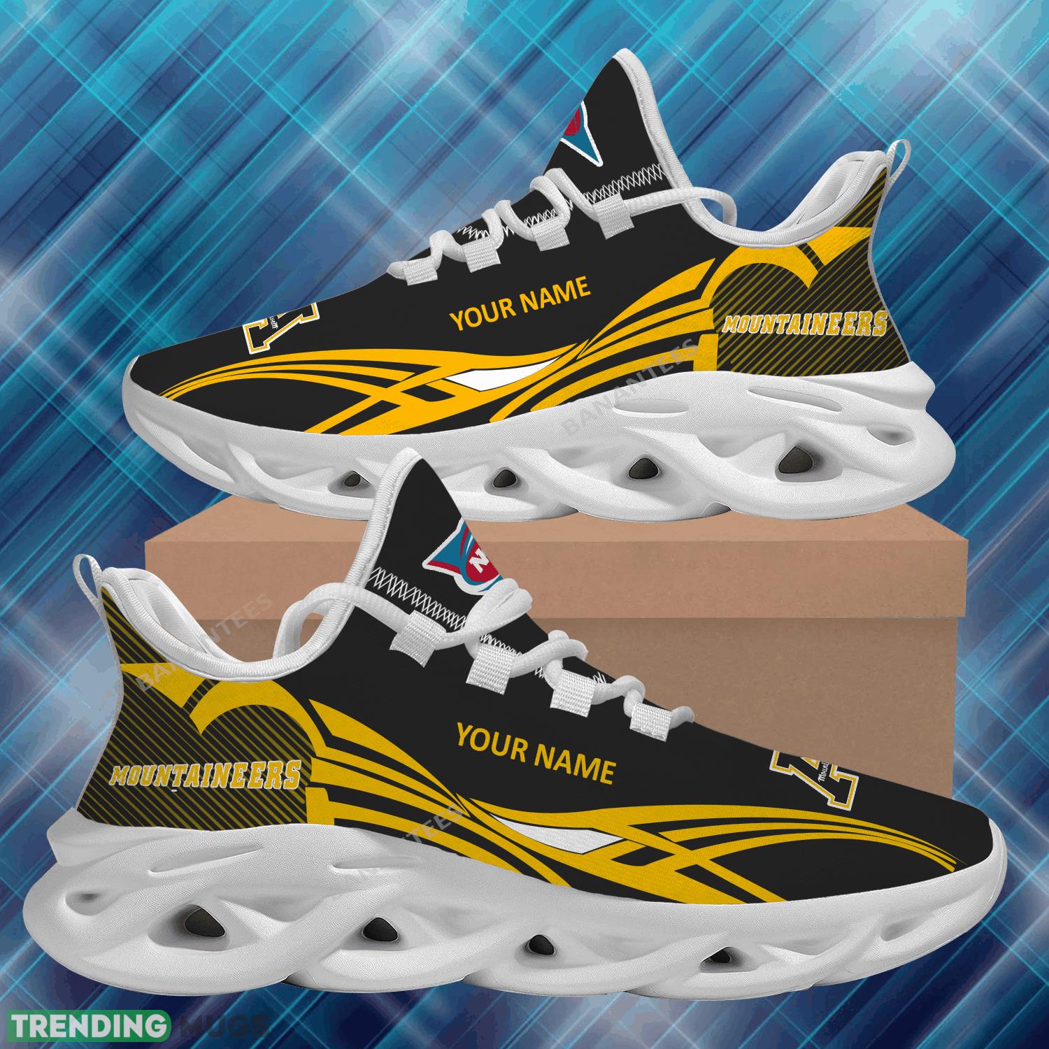 This NCAA Appalachian State Mountaineers Max Soul Shoes New Personalized Representation Sport Sneaker is a breathable, lightweight, and comfortable casual outdoor shoe that has a unique design. It is made of a mesh fabric which makes it sweat absorbent and breathable, while the rubber bottom ensures traction, comfort, and durability. It is available in two colors: black or white sole. There are two styles of shoelace holes so you can choose your preference.