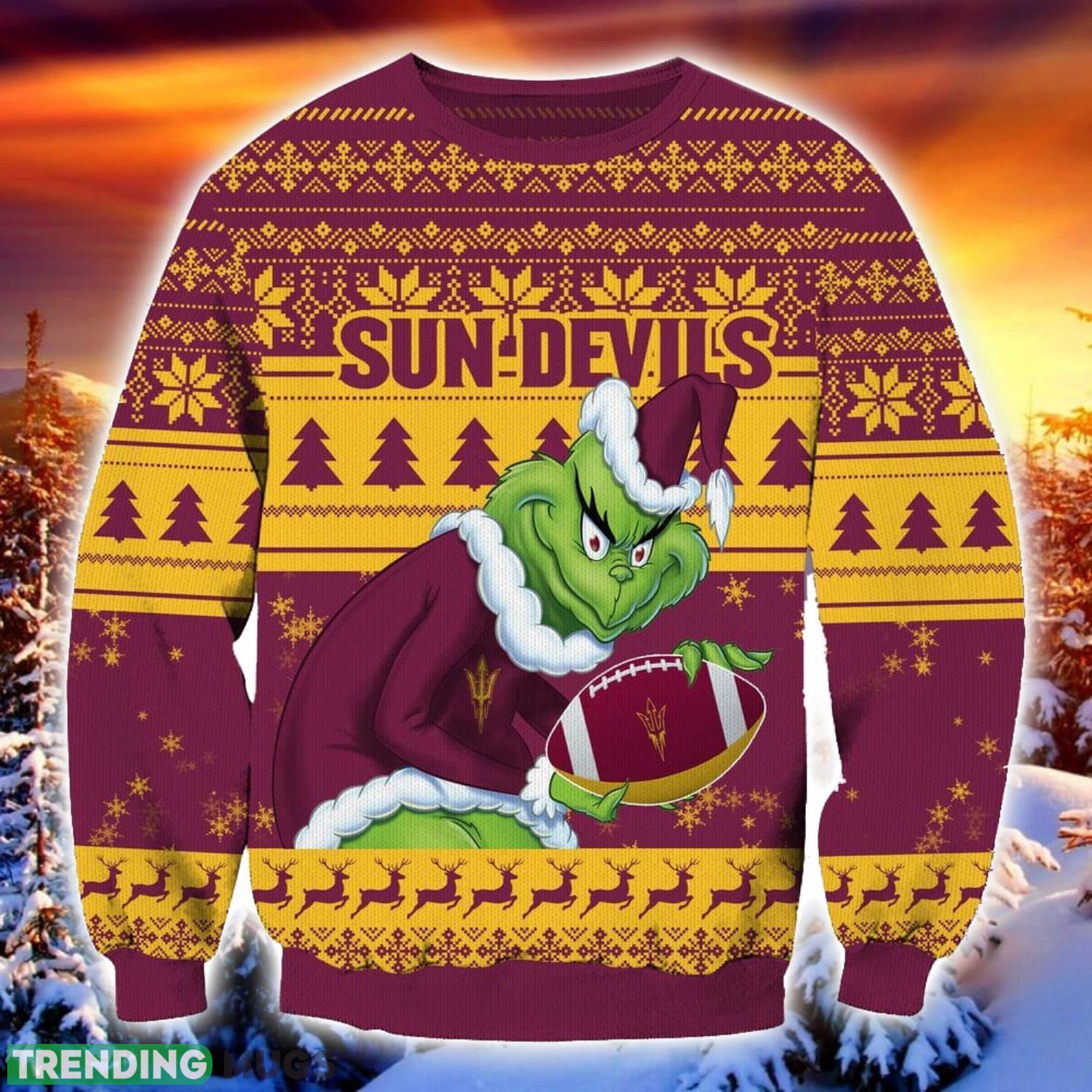 NCAA Arizona State Sun Devils Grinch Ugly Christmas Sweater Trending Sweater For 2023 Christmas Holidays Product Photo 1