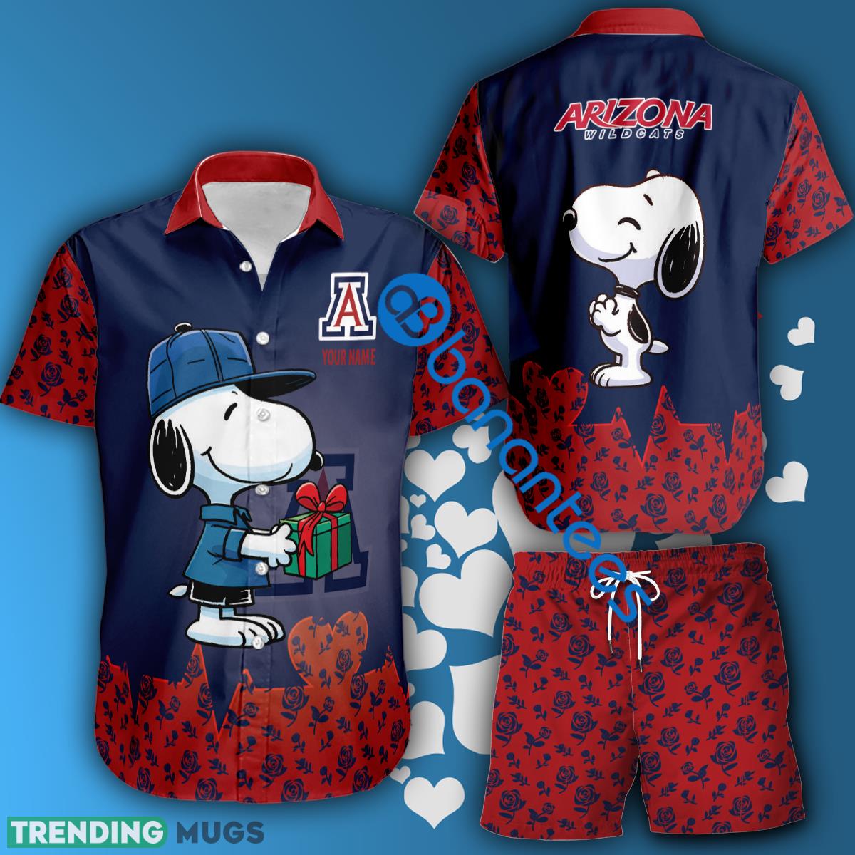 NCAA Arizona Wildcats Snoopy Gift Boyfriend And Girlfriend Combo Hawaiian Shirt And Short Custom Name Hawaiian & Short