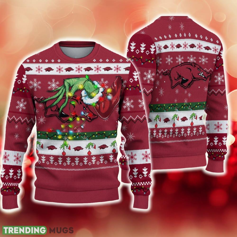 Don’t miss out on the opportunity to surprise the Razorbacks fan in your life with this funny and festive gift. Spread holiday joy and team spirit with the NCAA Arkansas Razorbacks Grinch Christmas Ugly Sweater. Order yours today and make this holiday season one to remember!