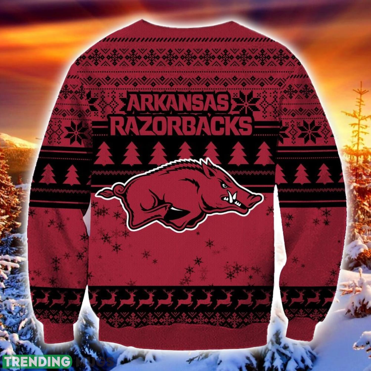 Whether you’re cheering on the Razorbacks at a game, attending an ugly sweater party, or simply spreading holiday cheer, this sweater is the perfect choice. Its trendy design and vibrant colors make it a standout piece that showcases your support for your favorite team while embracing the joy and fun of the holiday season.