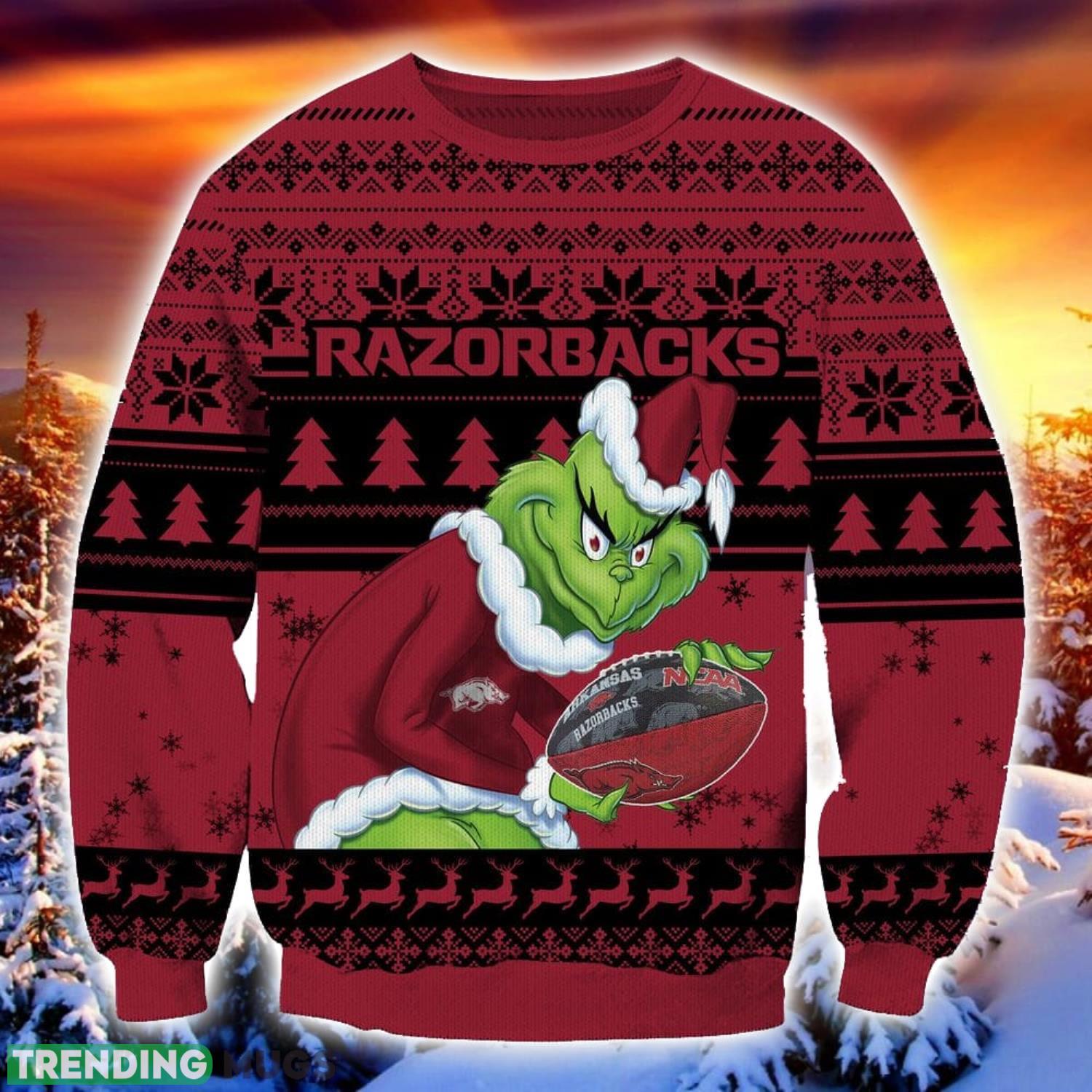NCAA Arkansas Razorbacks Grinch Ugly Christmas Sweater Trending Sweater For 2023 Christmas Holidays Informations: