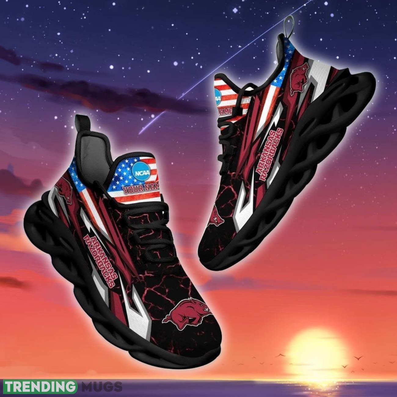 NCAA Arkansas Razorbacks Logo And Flag Custom Name Max Soul Shoes Gift For Fan information:
