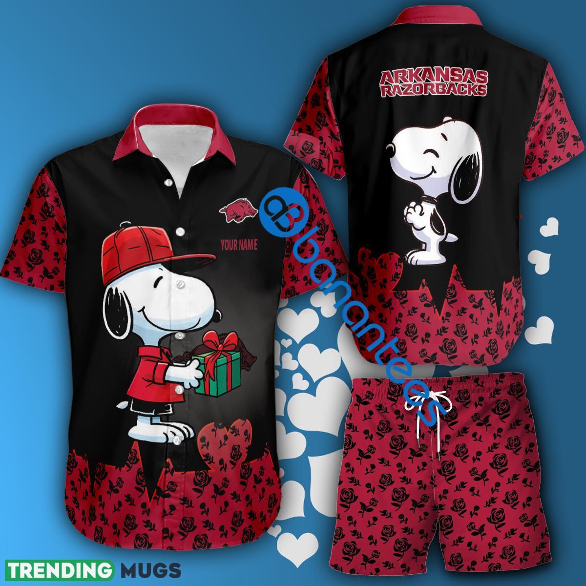 NCAA Arkansas Razorbacks Snoopy Gift Boyfriend And Girlfriend Hawaiian Shirt And Short Set Custom Name Hawaiian & Short