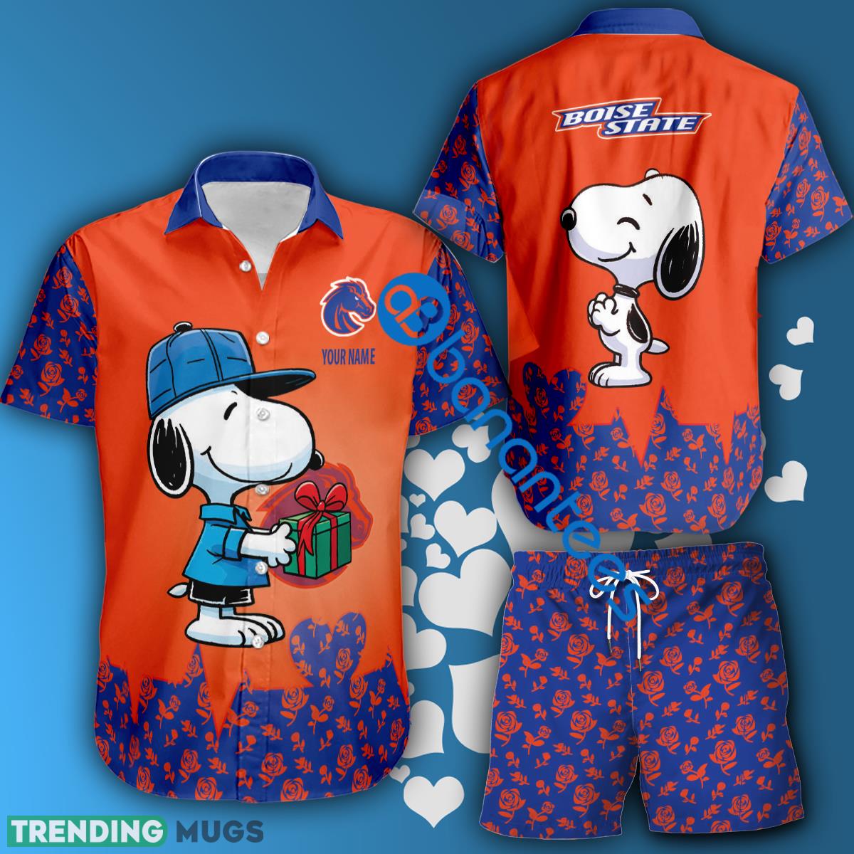 NCAA Boise State Broncos Snoopy Gift Boyfriend And Girlfriend Hawaiian Shirt And Short Set Custom Name Details: