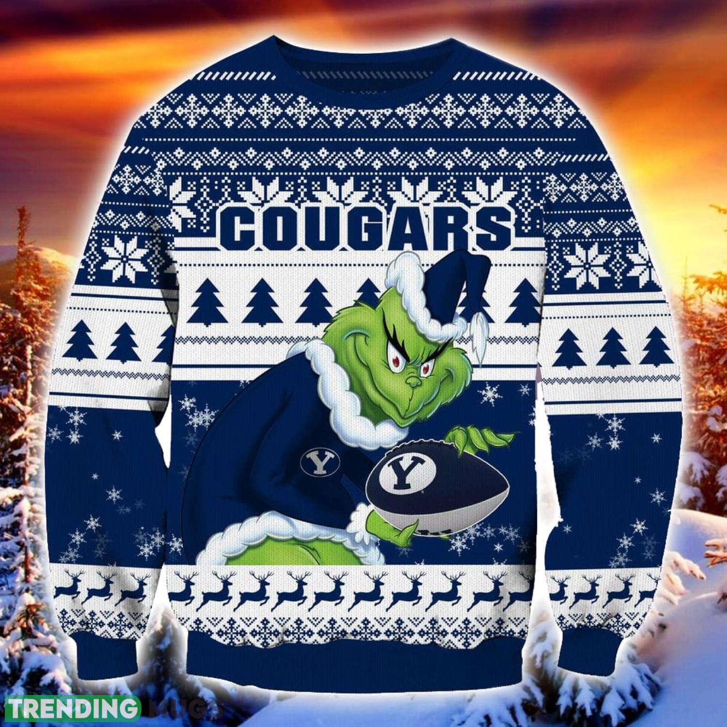 Some of the NCAA BYU Cougars Grinch Ugly Christmas Sweater Trending Sweater For 2023 Christmas Holidays photos
