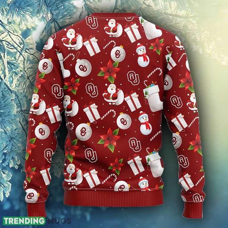 NCAA Christmas Oklahoma Sooners Santa Claus Snowman Christmas Ugly Sweater For Men Women 3D Sweater