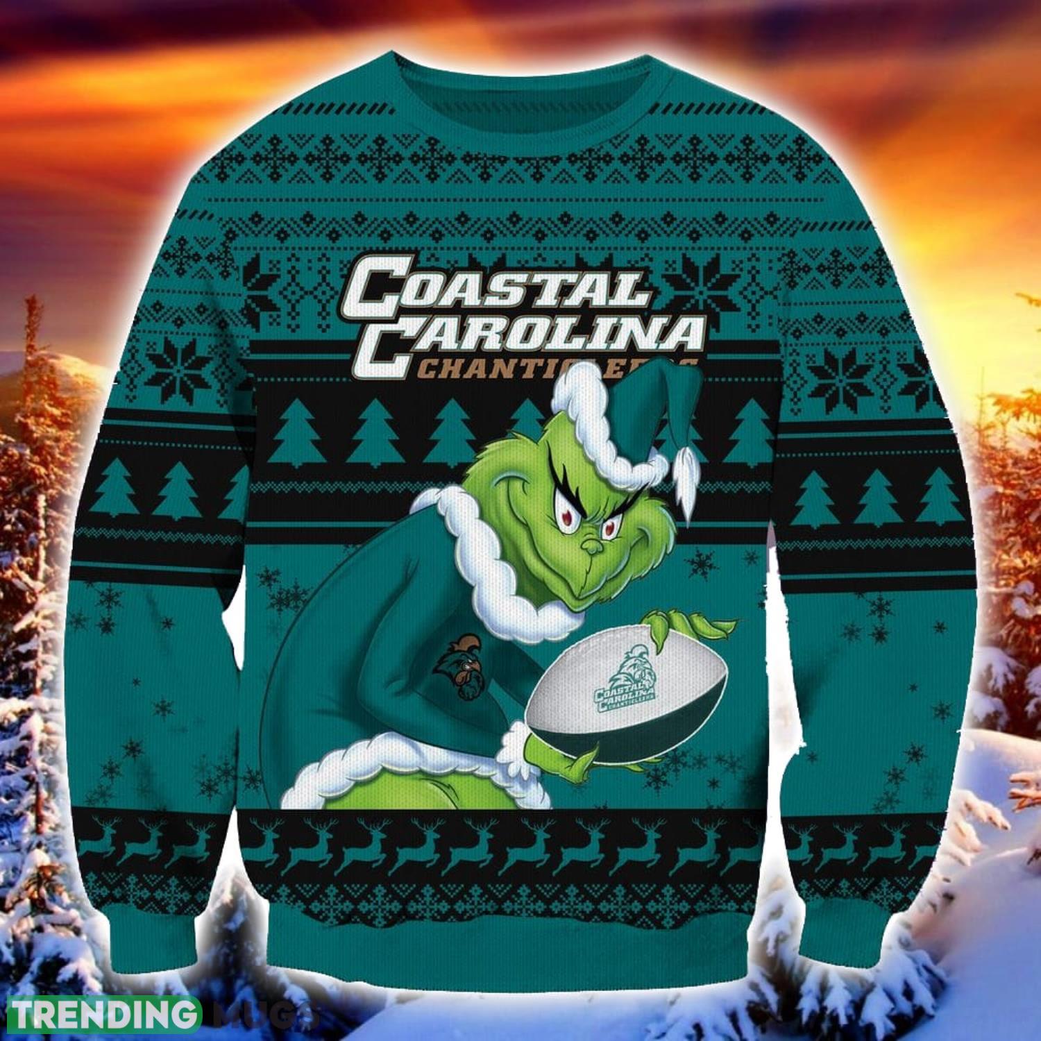 NCAA Coastal Carolina Chanticleers Grinch Ugly Christmas Sweater Trending Sweater For 2023 Christmas Holidays Informations: