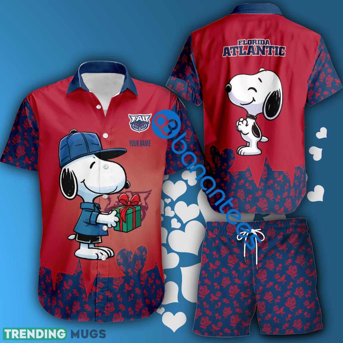 Some of the NCAA Florida Atlantic Owls Snoopy Gift Boyfriend And Girlfriend Hawaiian Shirt And Short Set Custom Name photos