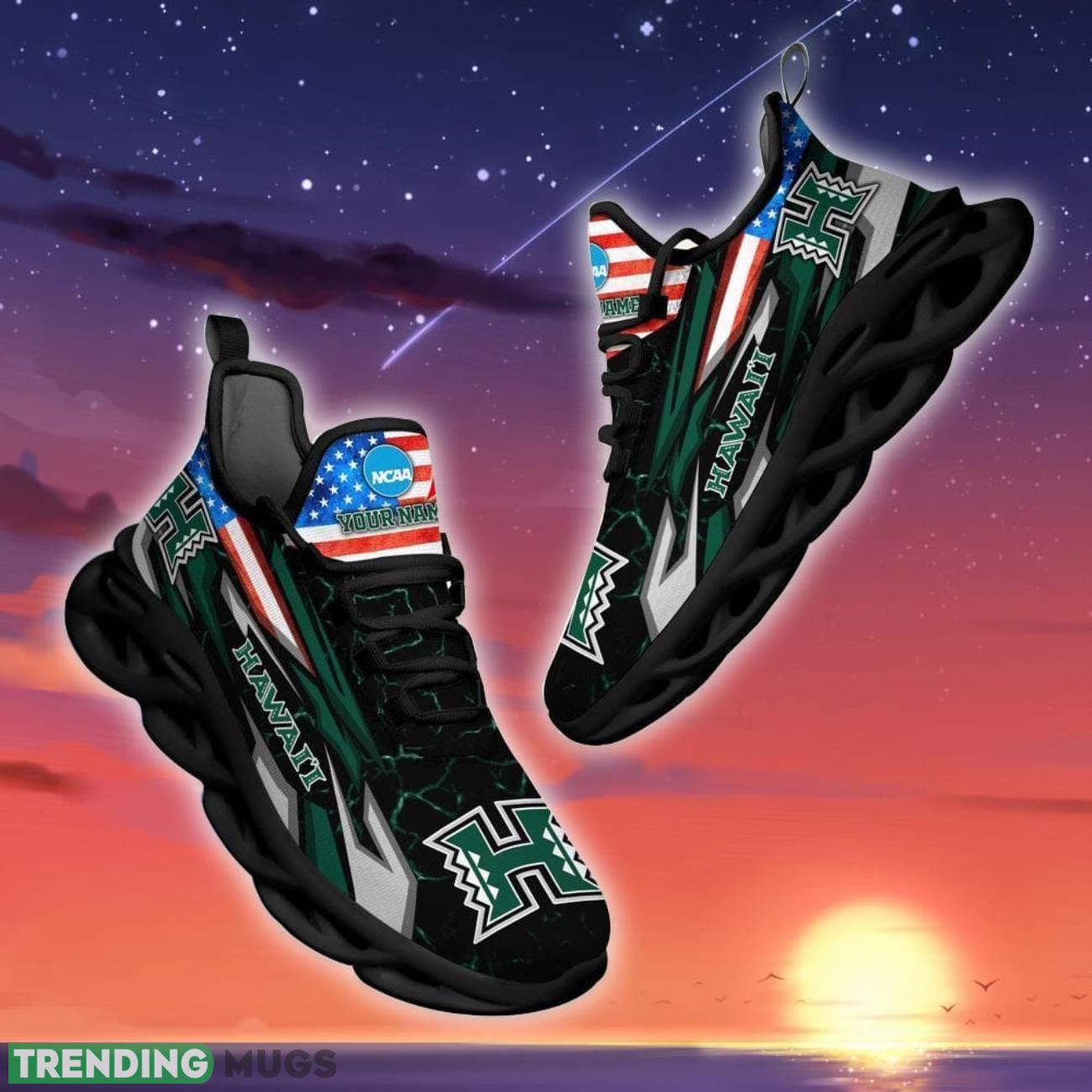Show off your Hawaii Rainbow Warriors pride with these custom Max Soul Shoes! Featuring the iconic team logo and flag, these shoes are the perfect gift for any dedicated fan. Personalize them with your name for a unique touch. Whether you’re hitting the court or cheering from the sidelines, these shoes will make sure you stand out in style. Get your hands on these exclusive Hawaii Rainbow Warriors shoes today!