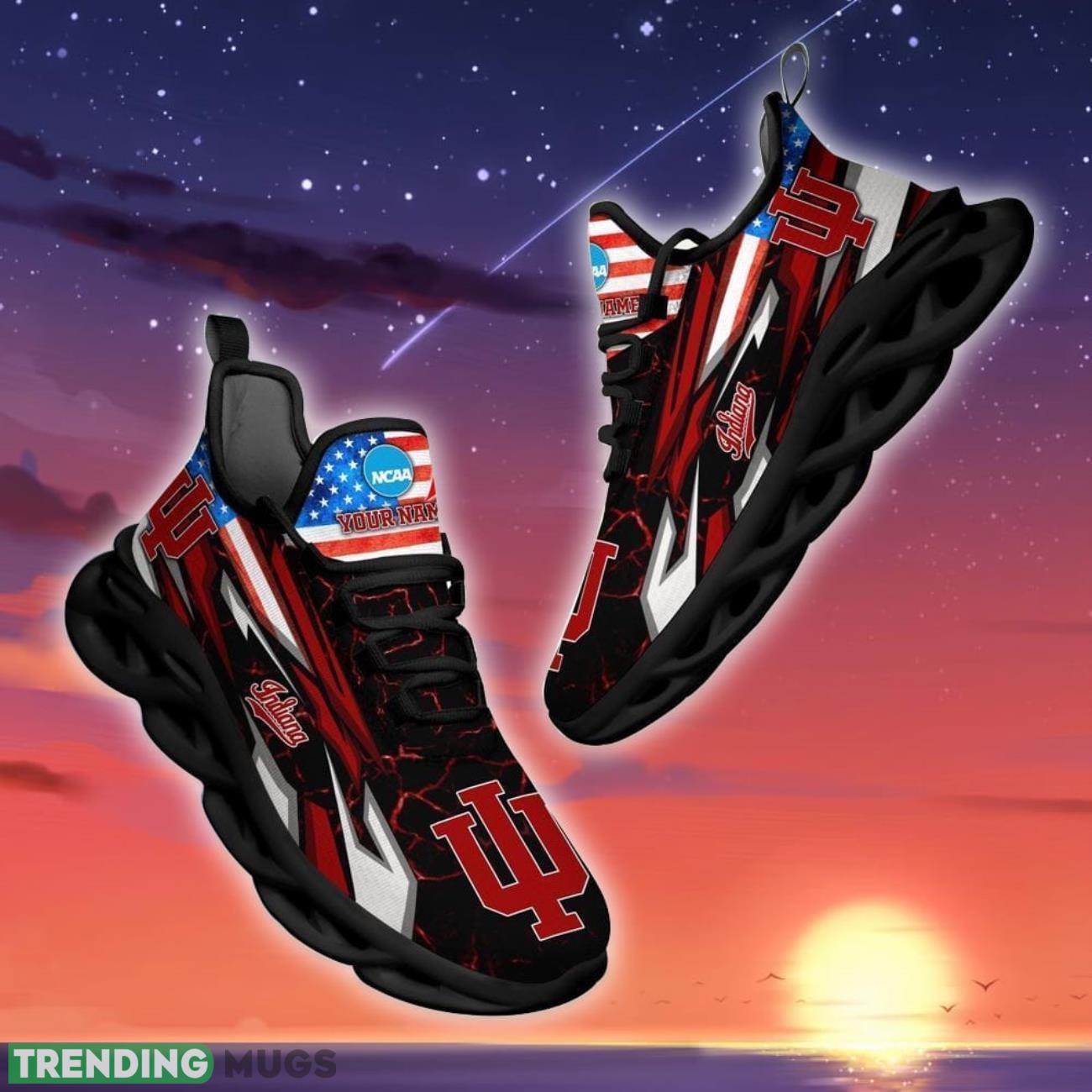 Show off your team spirit with these NCAA Indiana Hoosiers Logo And Flag Custom Name Max Soul Shoes! Perfect for any fan, these shoes are a must-have for game day or any day. Personalize them with your name for a unique touch. Step out in style and support your favorite team with these one-of-a-kind shoes. Get yours today and represent the Hoosiers in a whole new way!